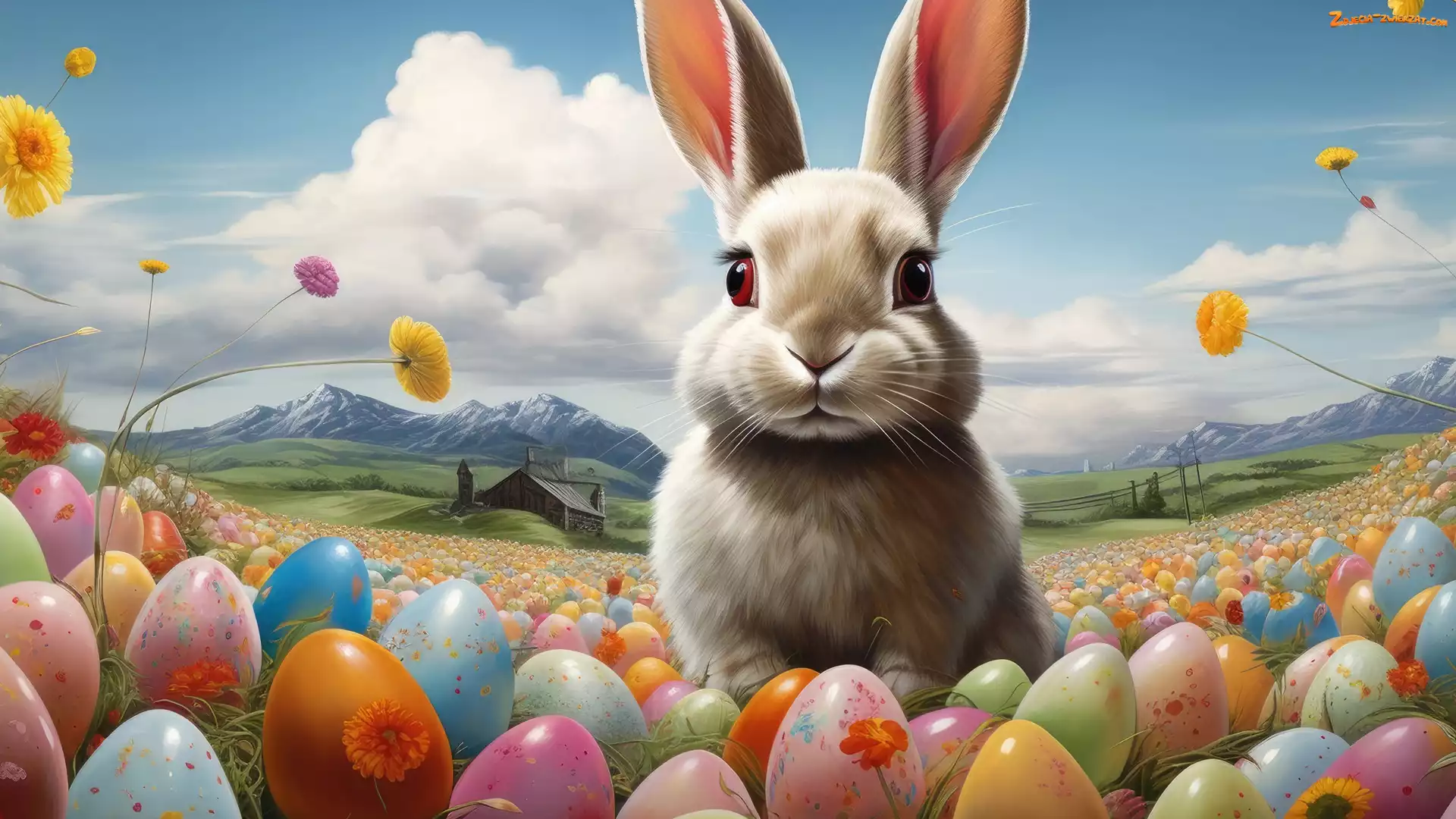 Zdjęcie: Chmury, Pisanki, Wielkanoc, Łąka, Królik, Kwiaty