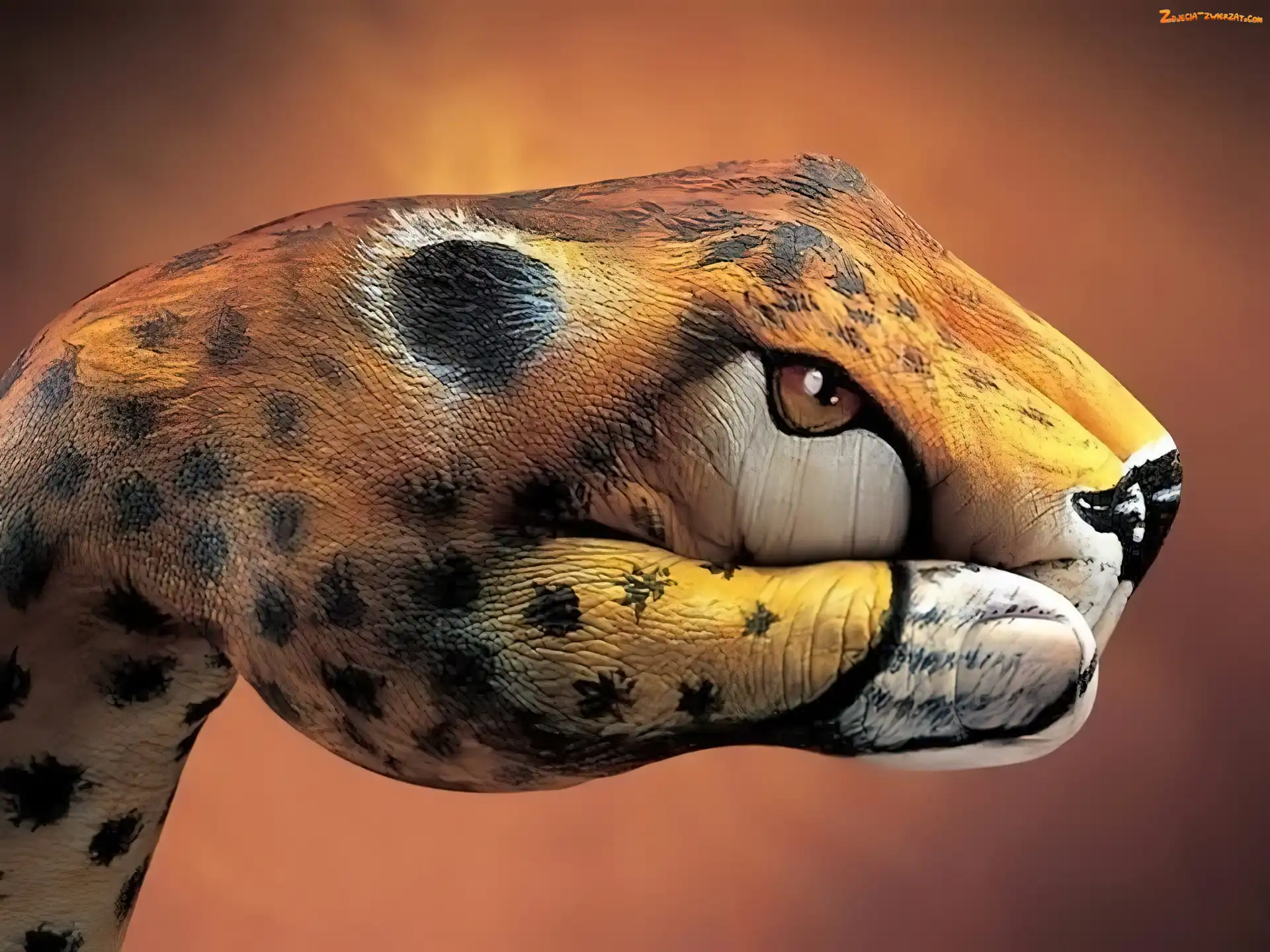 Zdjęcie: Bodypainting, Lampart, Dłoń