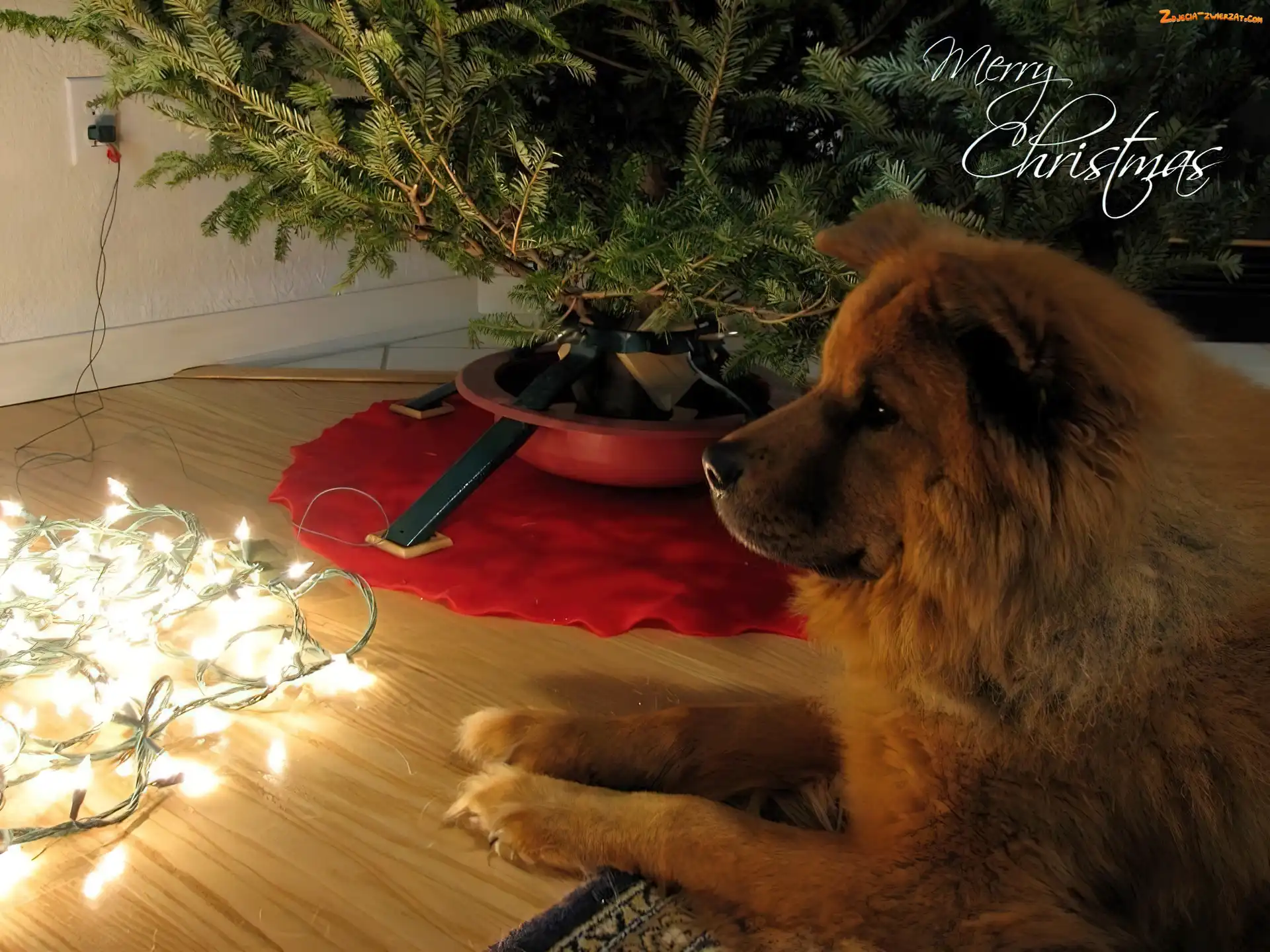 Zdjęcie: Lampki, Wyczekiwanie, Pies, Choinka