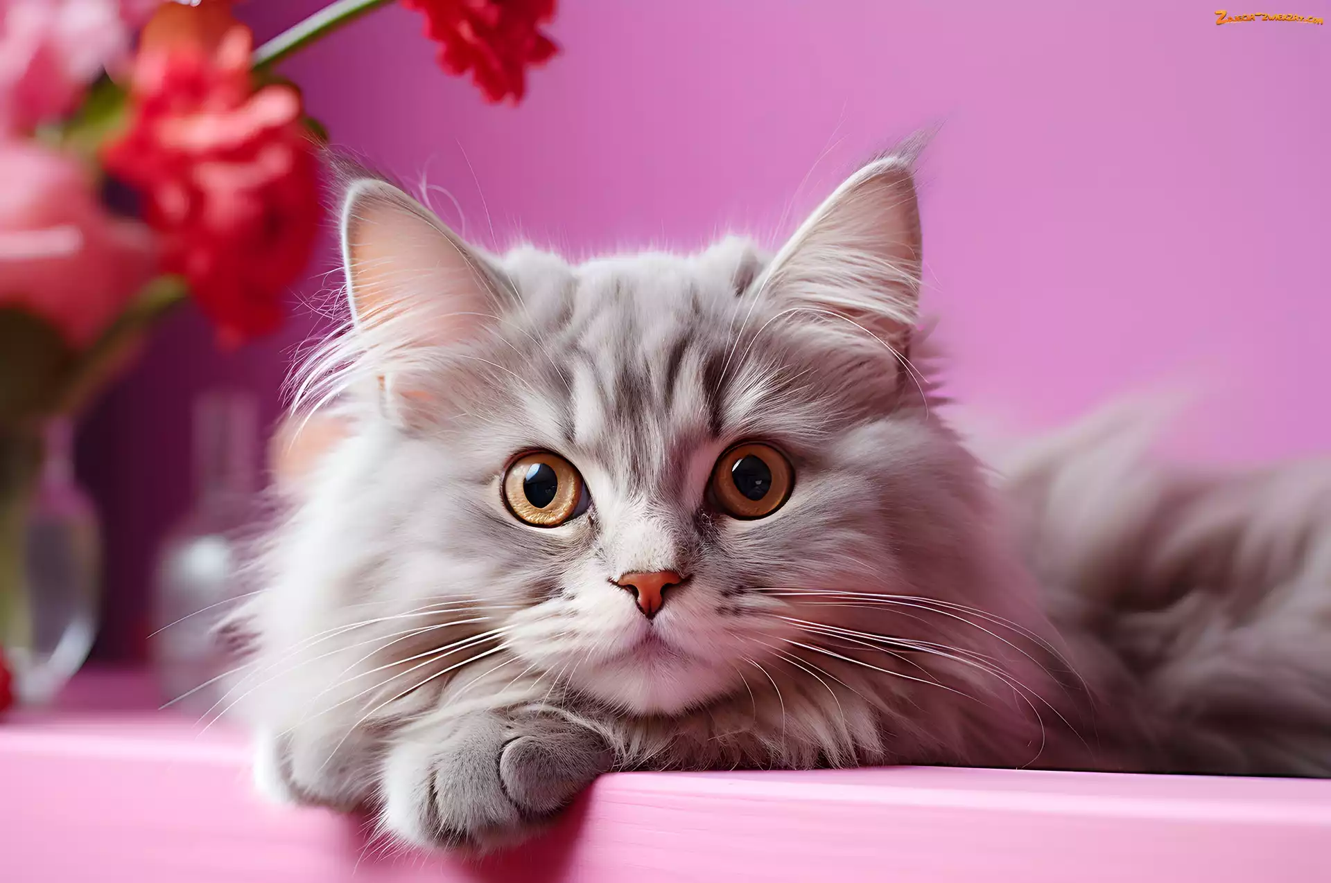 Kwiaty, Łapki, Grafika, Młody, Kot
