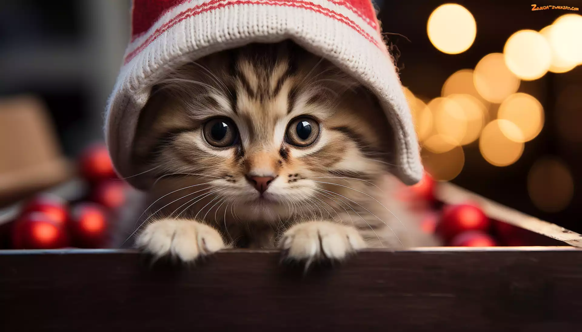 Zdjęcie: Kot, Czapka, Bombki, Łapki