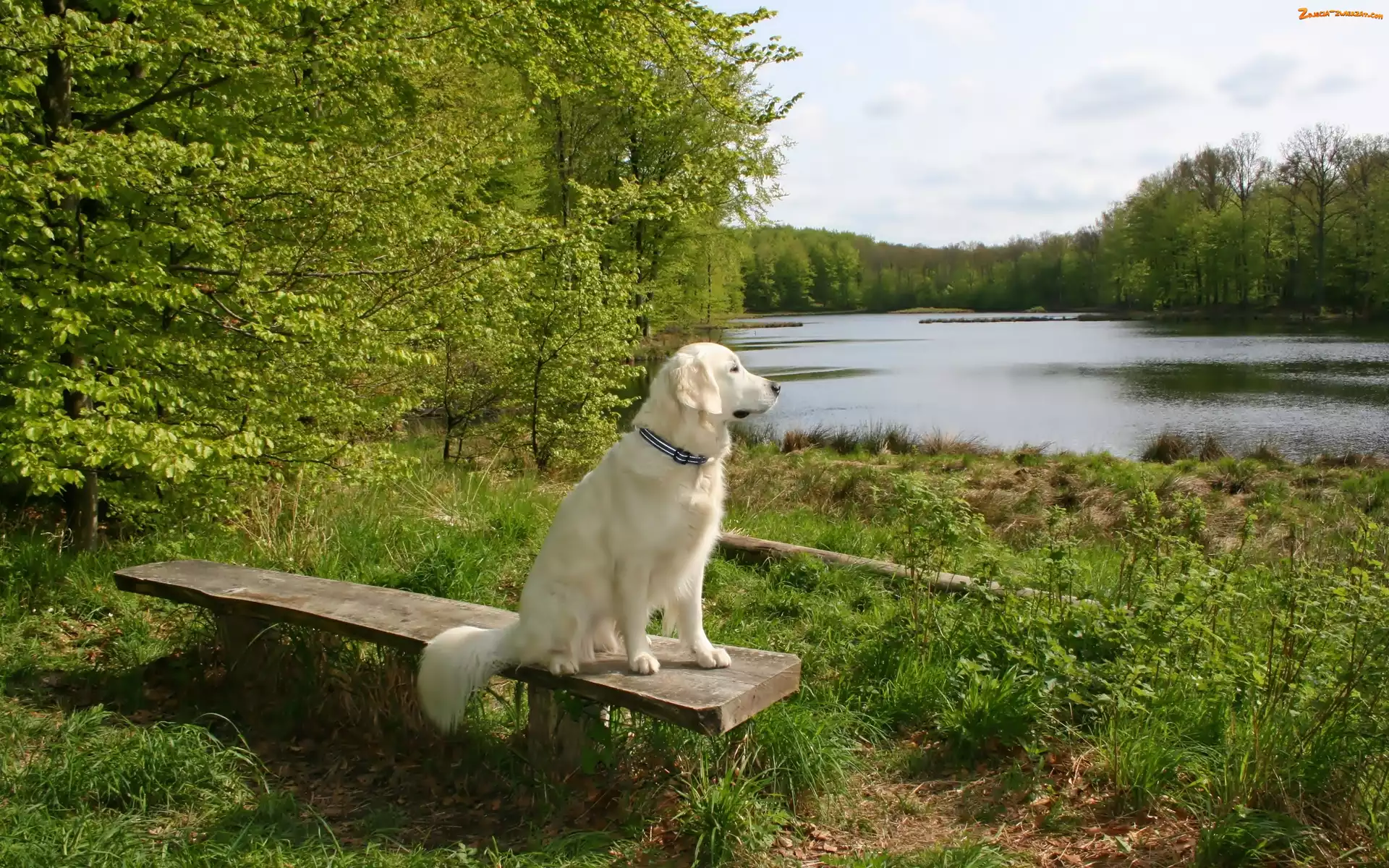 Zdjęcie: Las, Jezioro, Piesek, Biały, Ławka