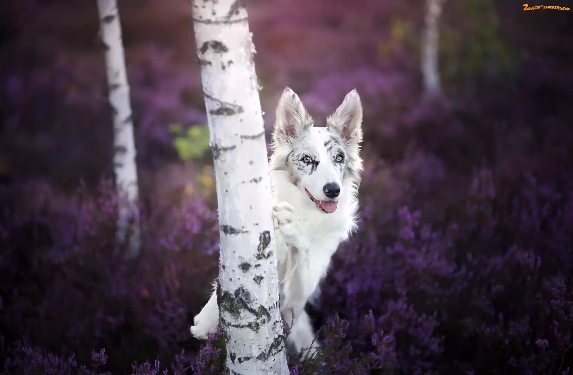 Zdjęcie: Las, Wrzos, Border collie, Brzozy