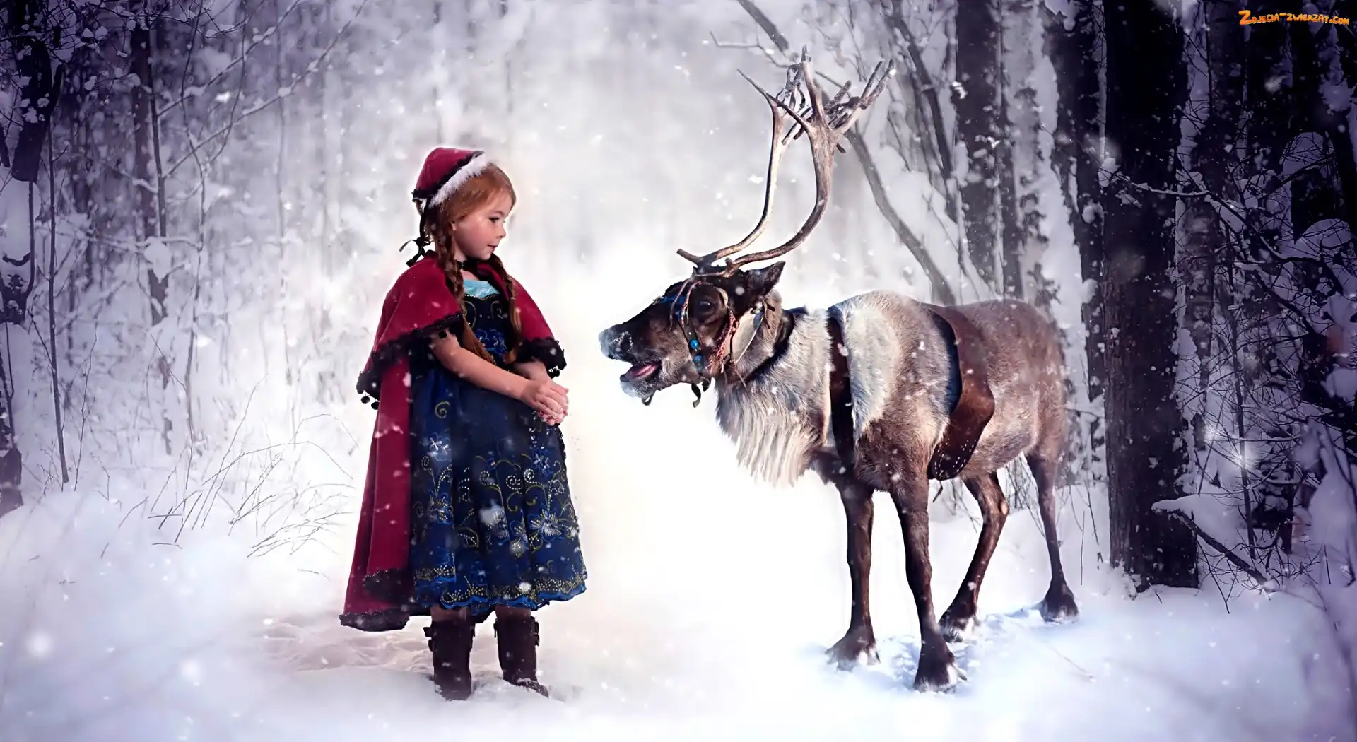 Zdjęcie: Las, Renifer, Dziecko, Zima