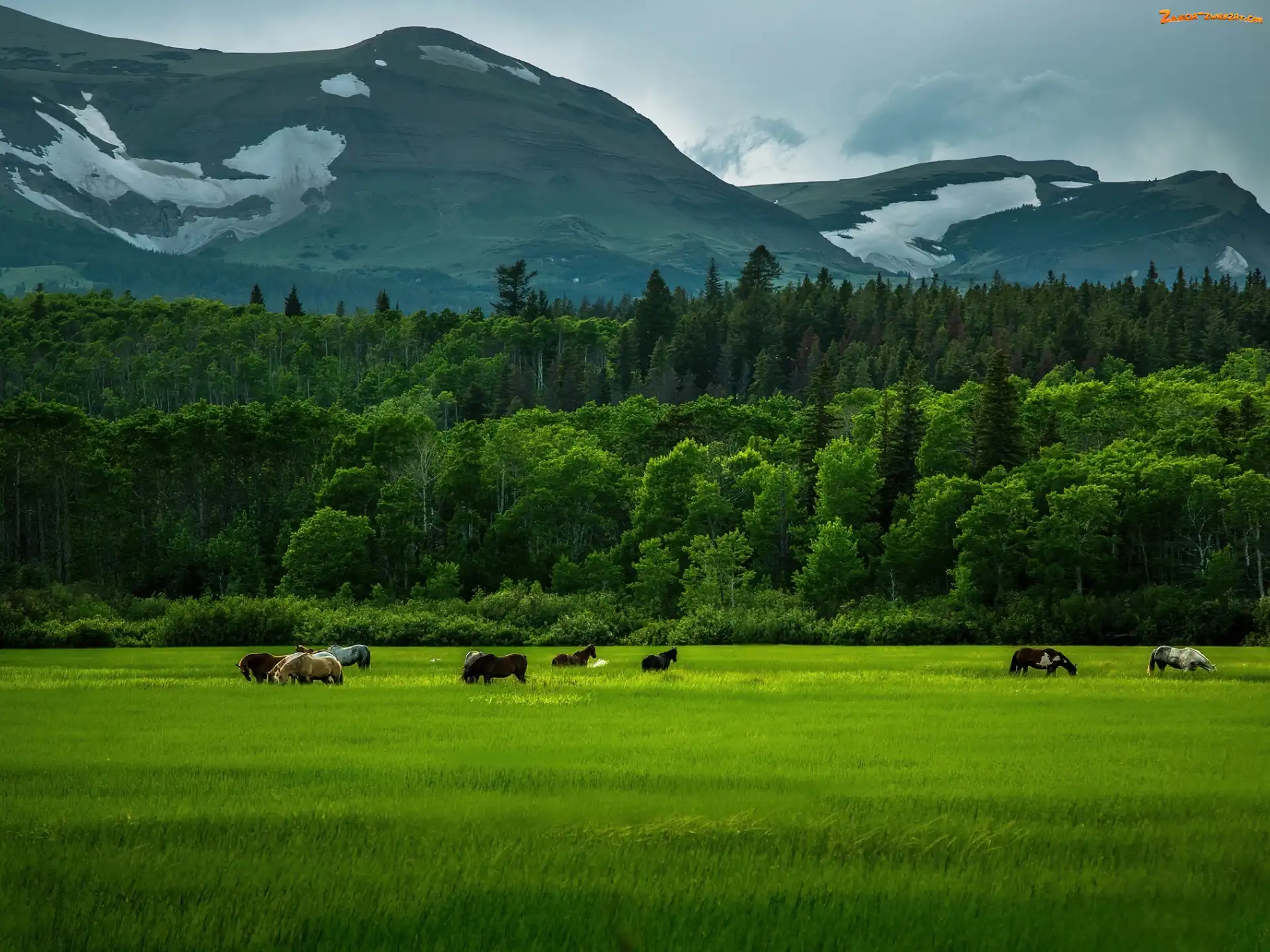 Zdjęcie: Las, Zboże, Góry, Konie