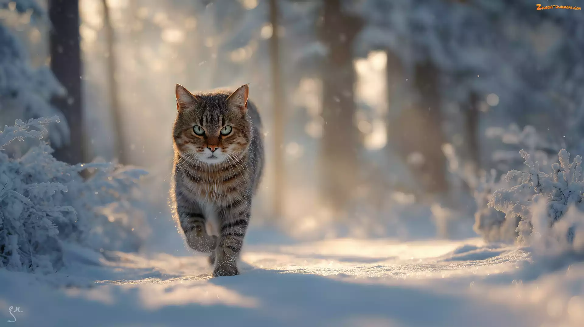 Zdjęcie: Kot, Las, Grafika AI, Zima