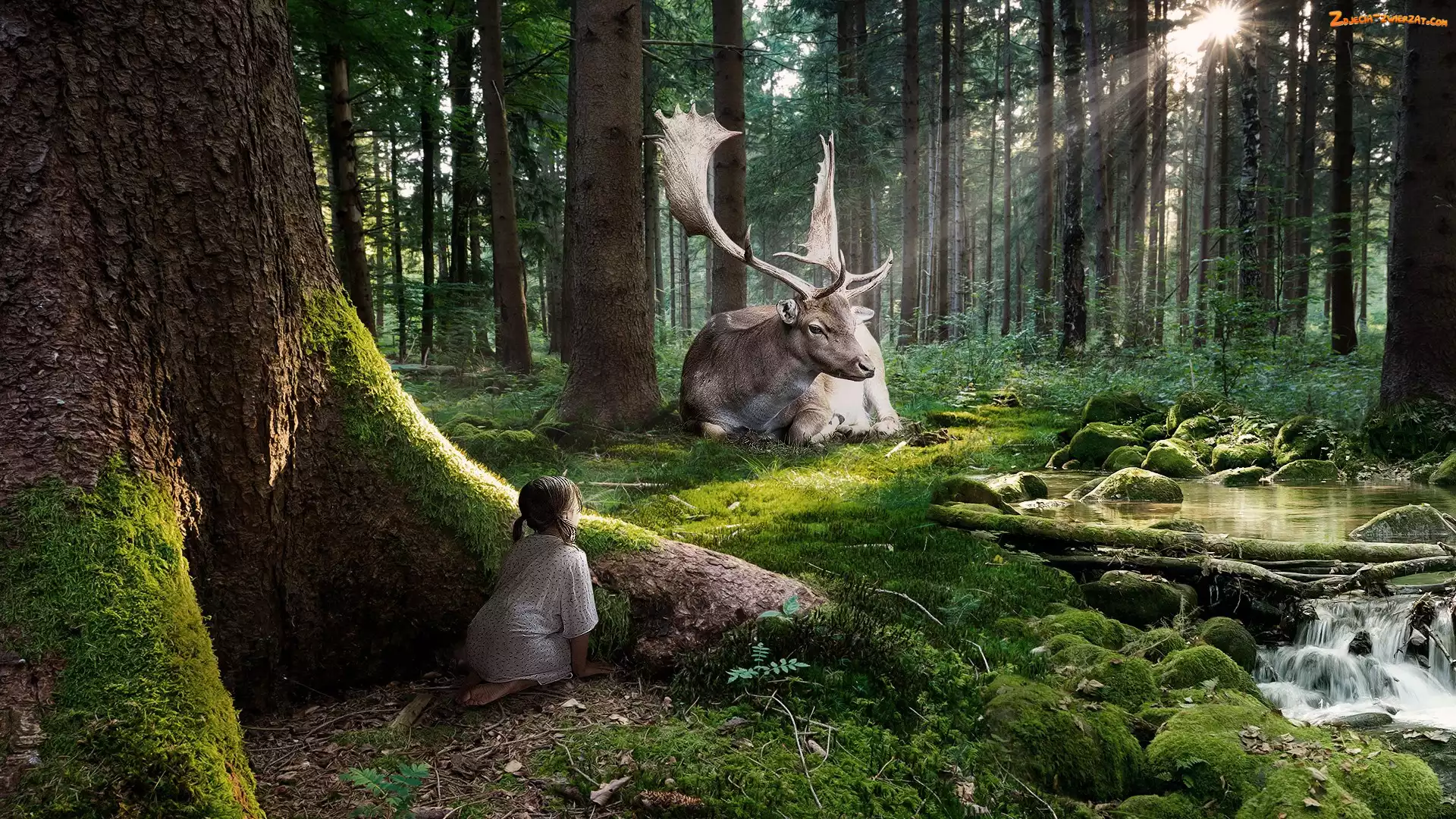 Zdjęcie: Las, Grafika, Jeleń, Dziewczynka