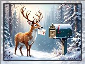 Skrzynka pocztowa, List, Las, Zima, Jeleń