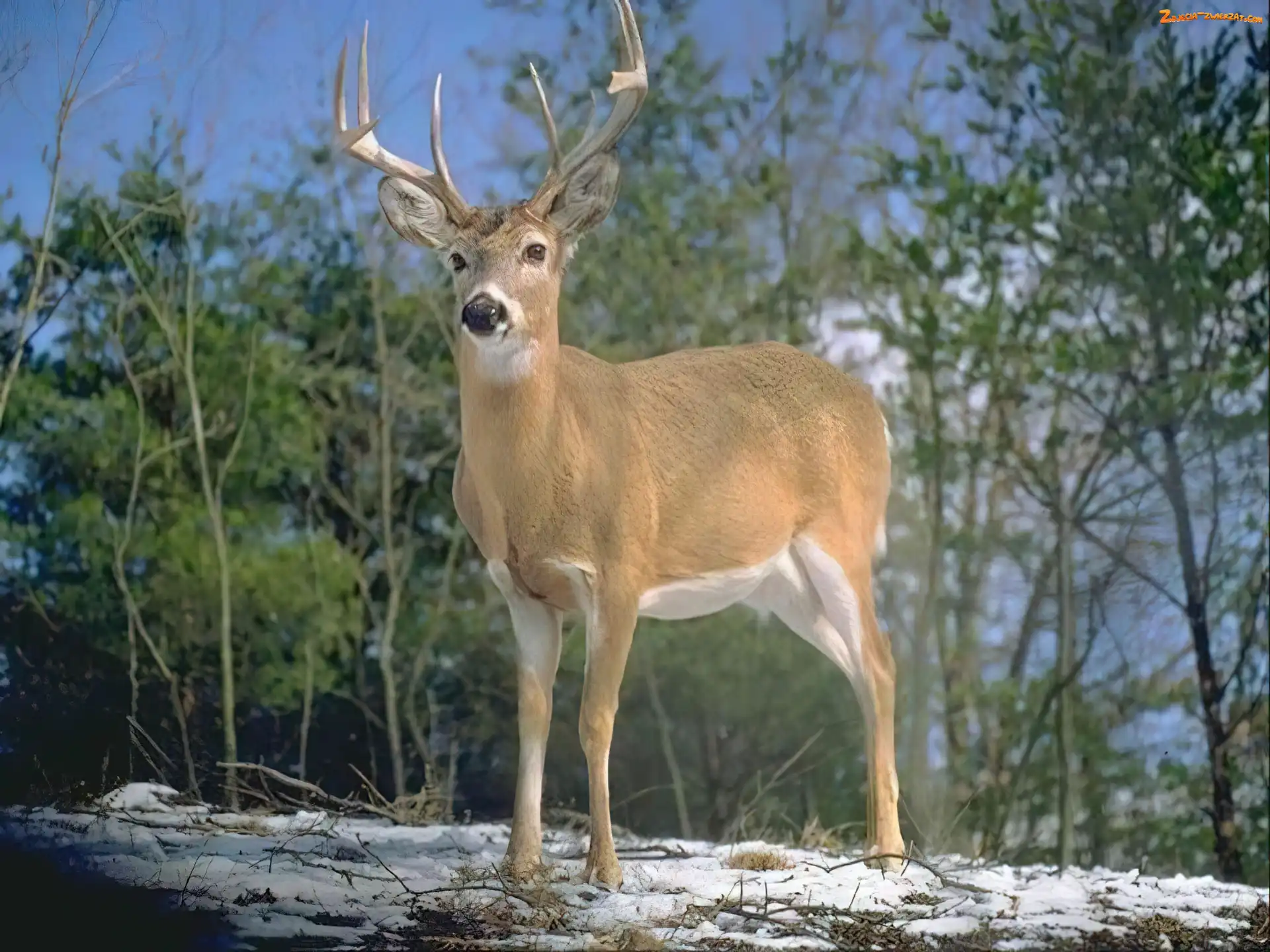 Las, Drzewa, Poroże, Jeleń, Śnieg
