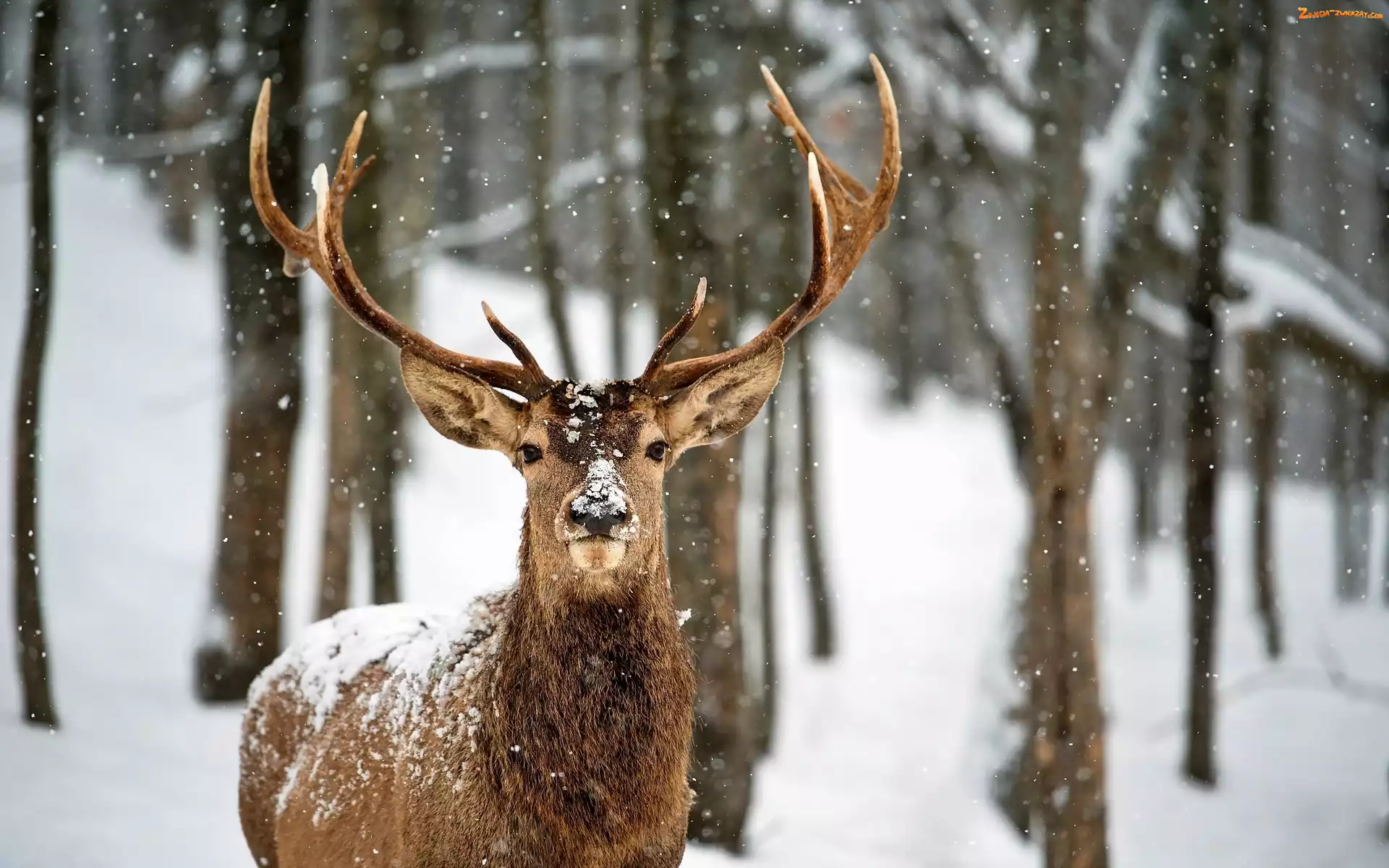 Zdjęcie: Las, Rozmycie, Jeleń, Śnieg