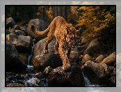 Grafika AI, Kamienie, Las, Puma, Rzeka, Strumień