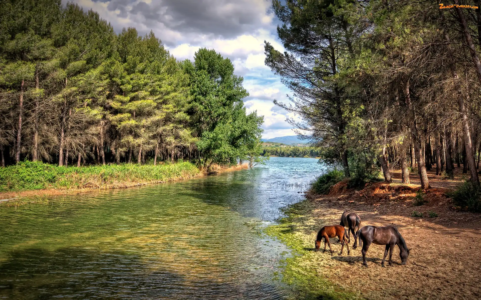 Zdjęcie: Konie, Las, Rzeka