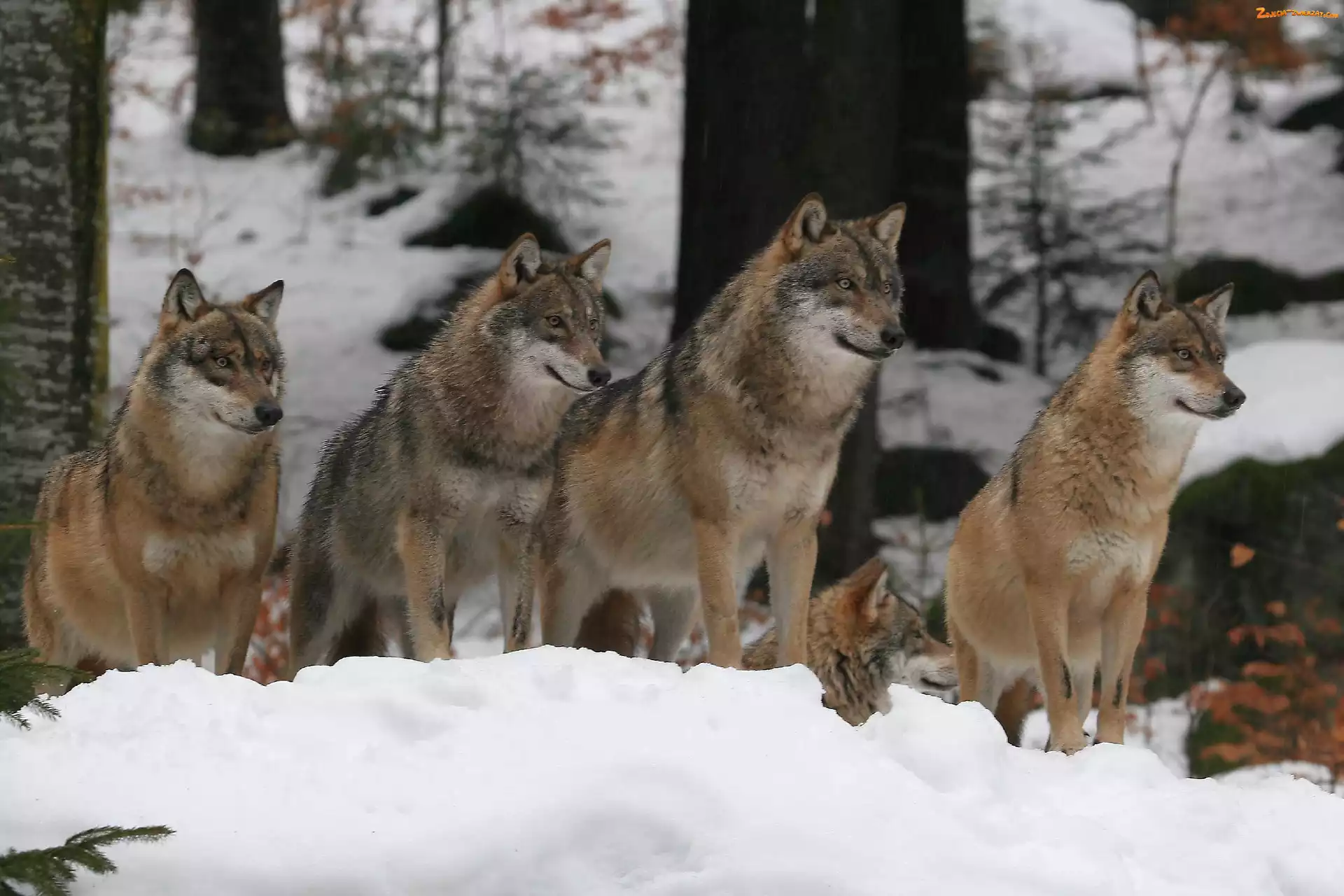 Zdjęcie: Śnieg, Las, Wilki