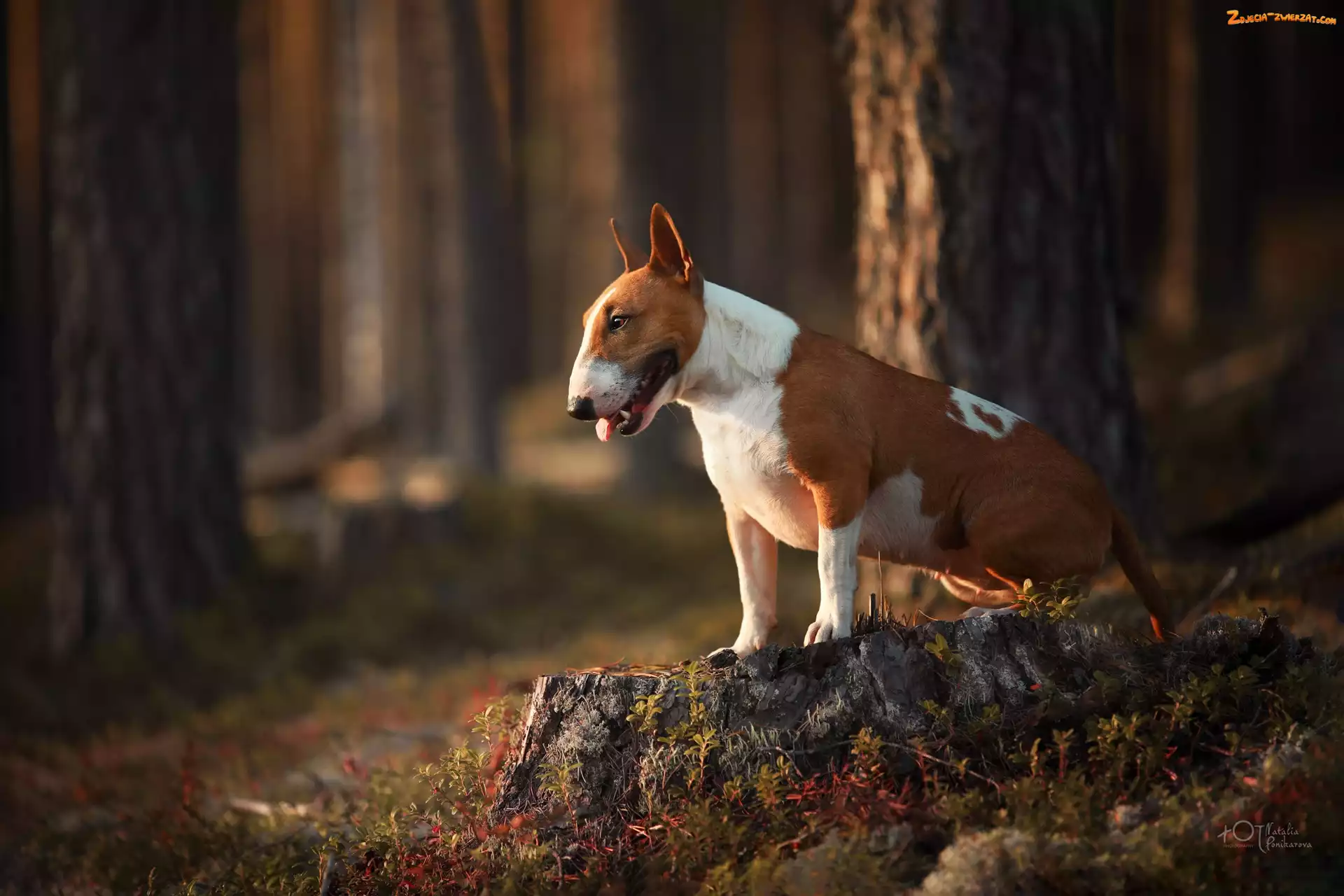 Zdjęcie: Las, Ściółka, Bulterier, Pies, Pień