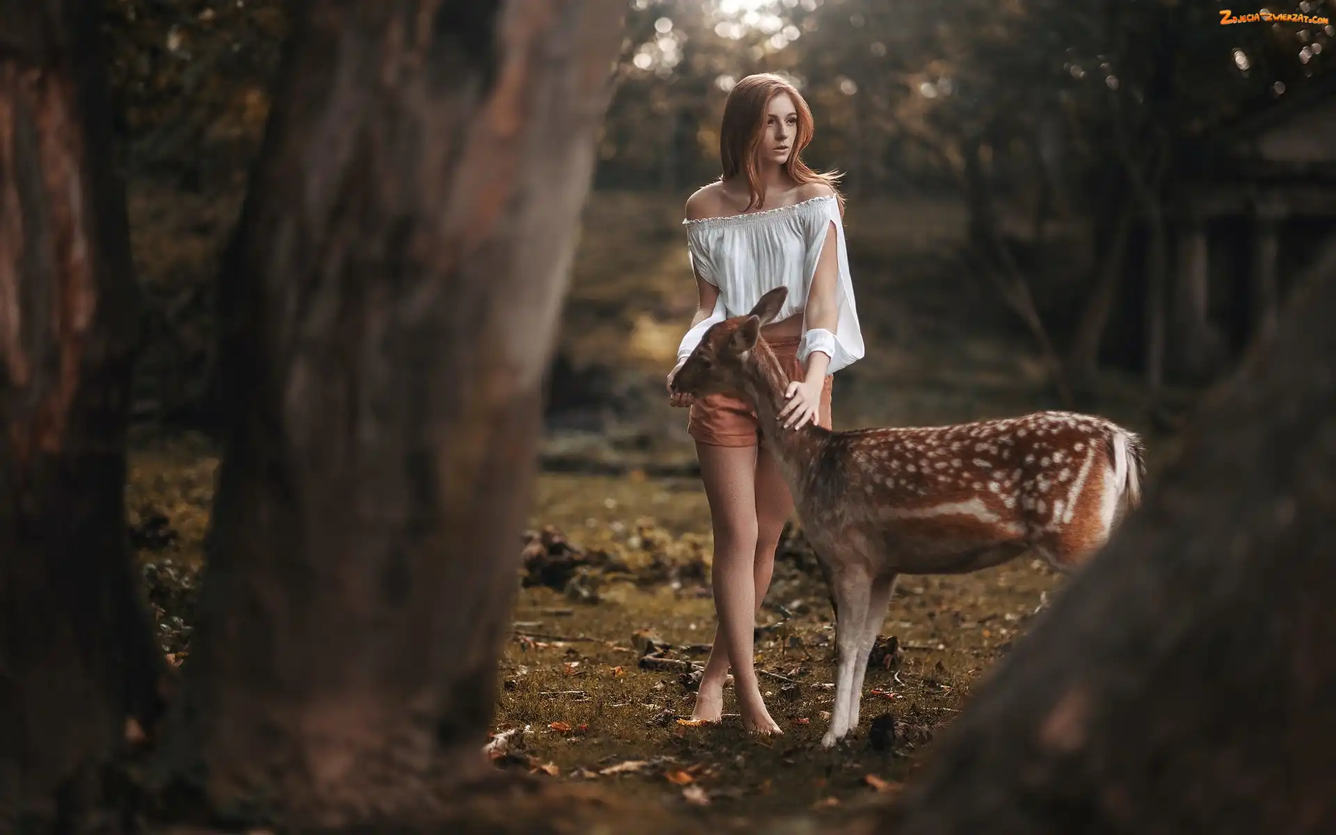 Zdjęcie: Sarna, Las, Kobieta, Gałęzie, Ściółka, Bosa, Drzewa