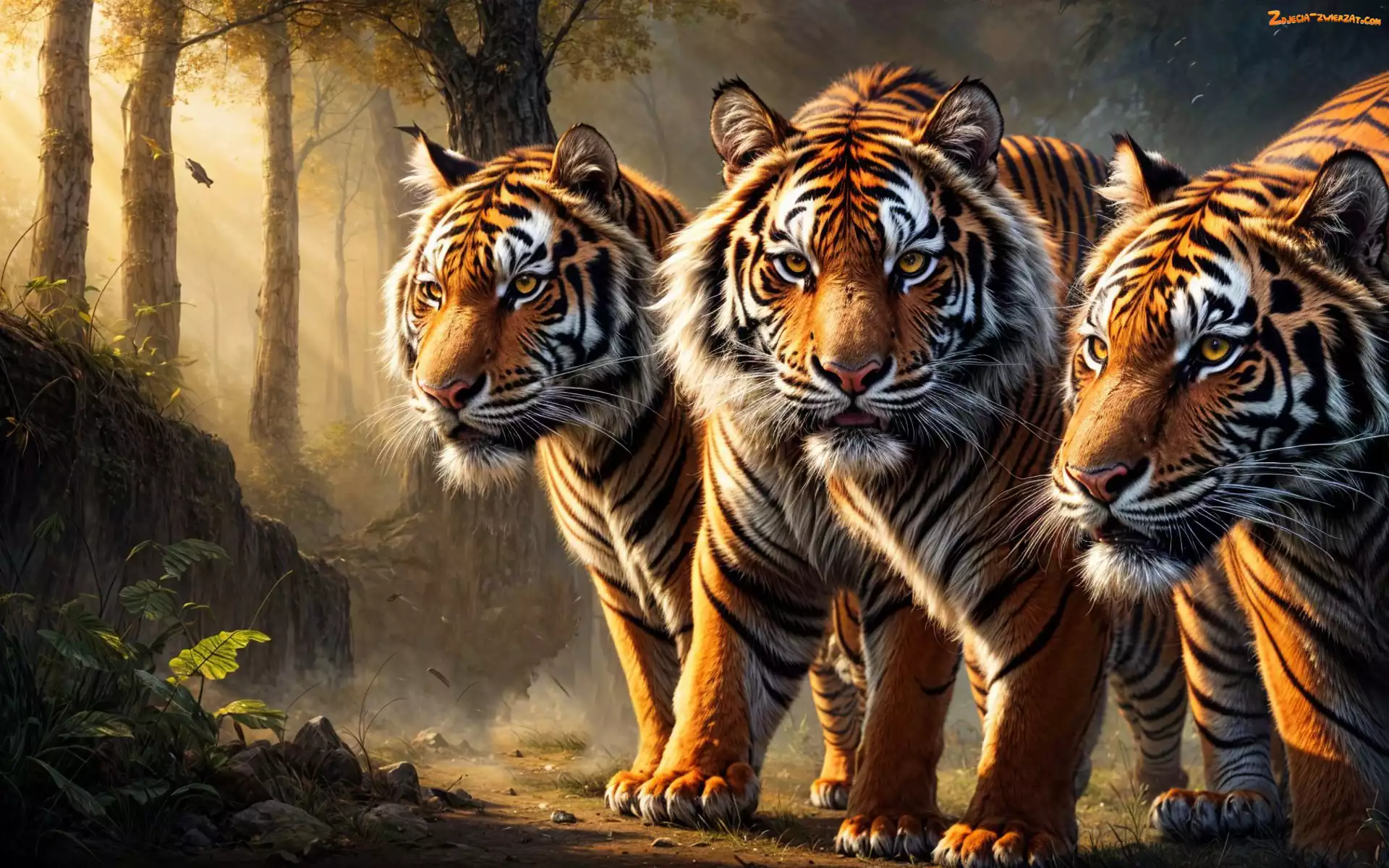 Trzy, Tygrysy, Grafika, Las