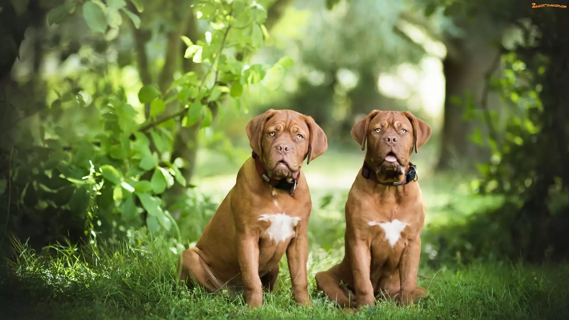 Zdjęcie: Zieleń, Las, Psy, Dwa, Dog de Bordeaux