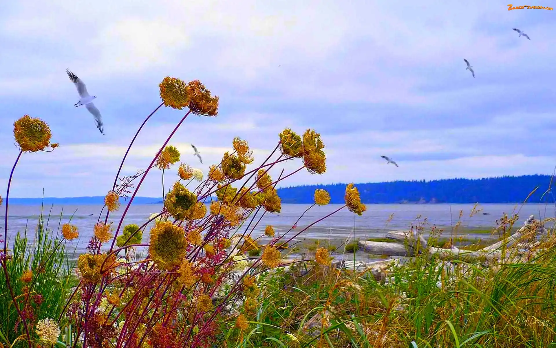 Zdjęcie: Lasy, Jezioro, Lato, Ptaki, Trawy, Góry