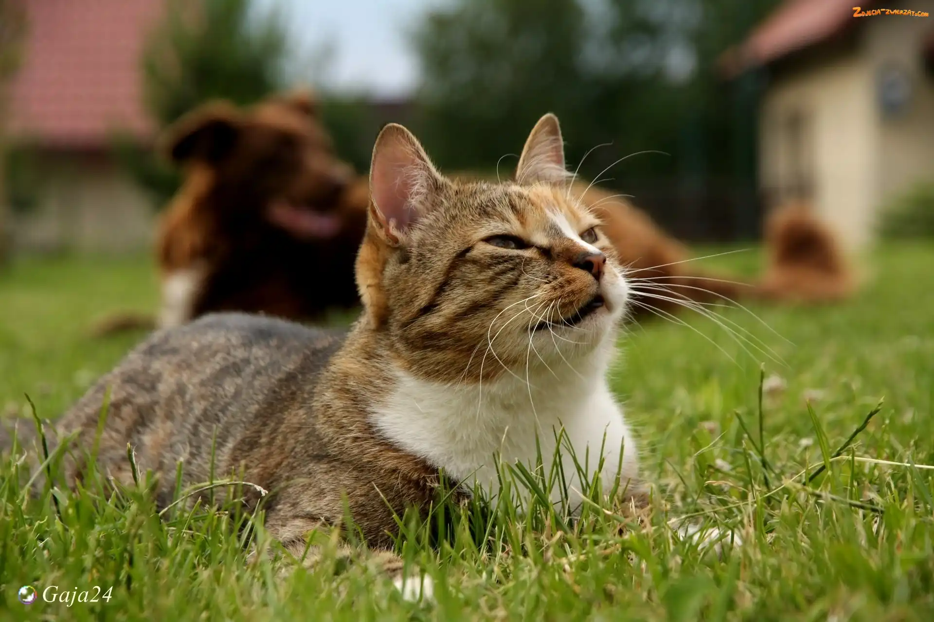 Zdjęcie: Lato, Trawa, Zmrużone, Kot, Oczy