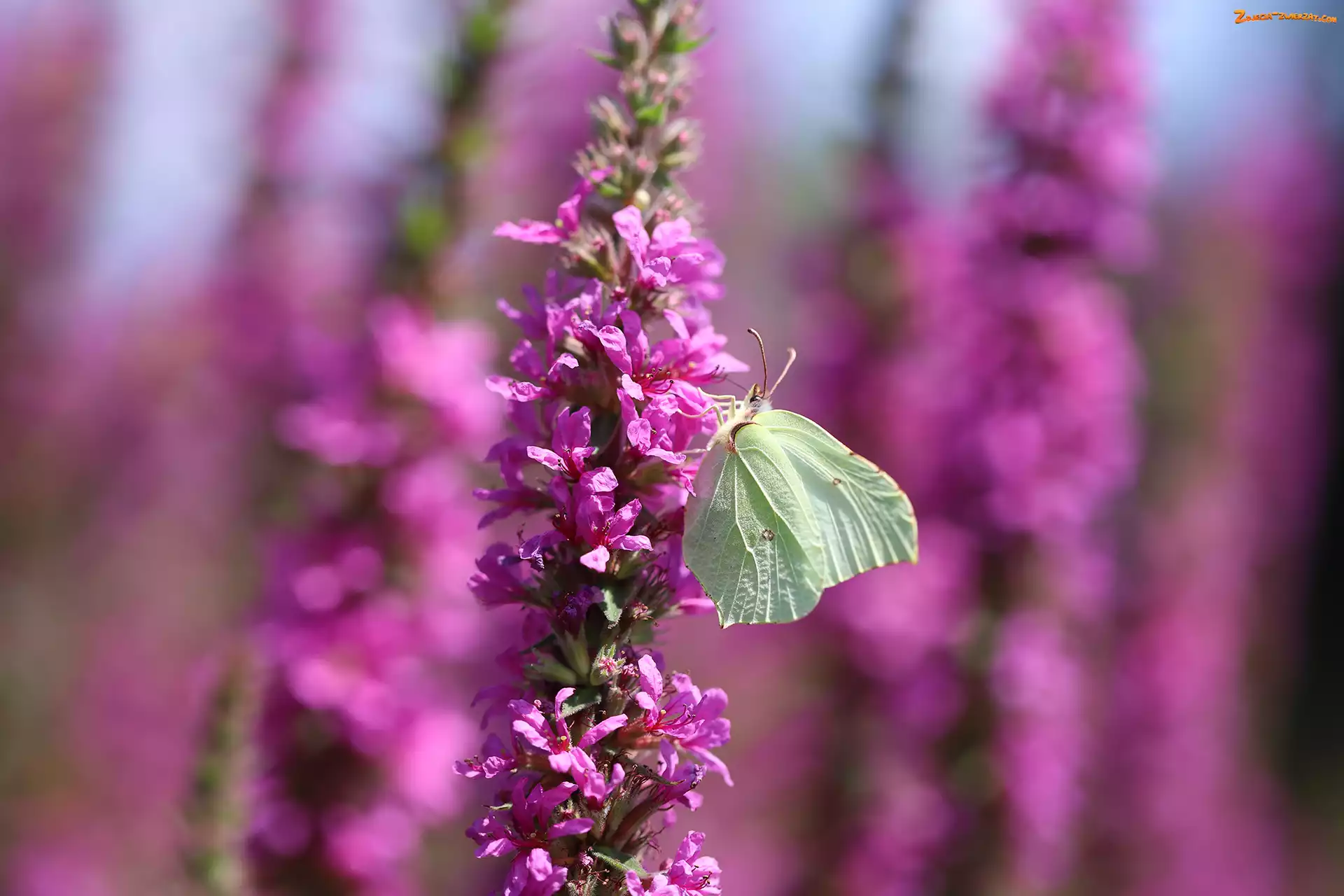 Zdjęcie: Latolistek cytrynek, Kwiaty, Motyl, Różowe