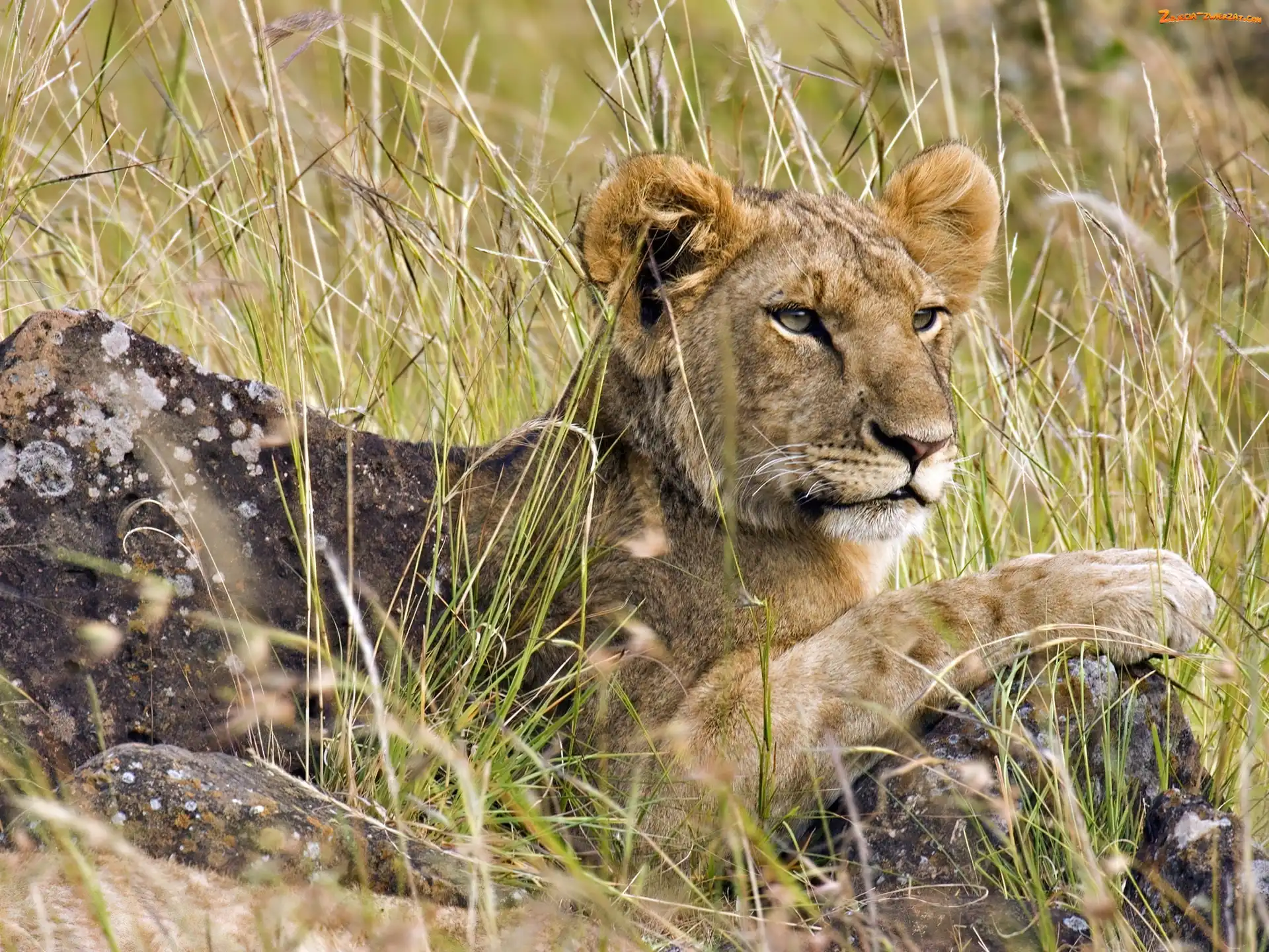 Zdjęcie: Kamień, Lew, Trawa