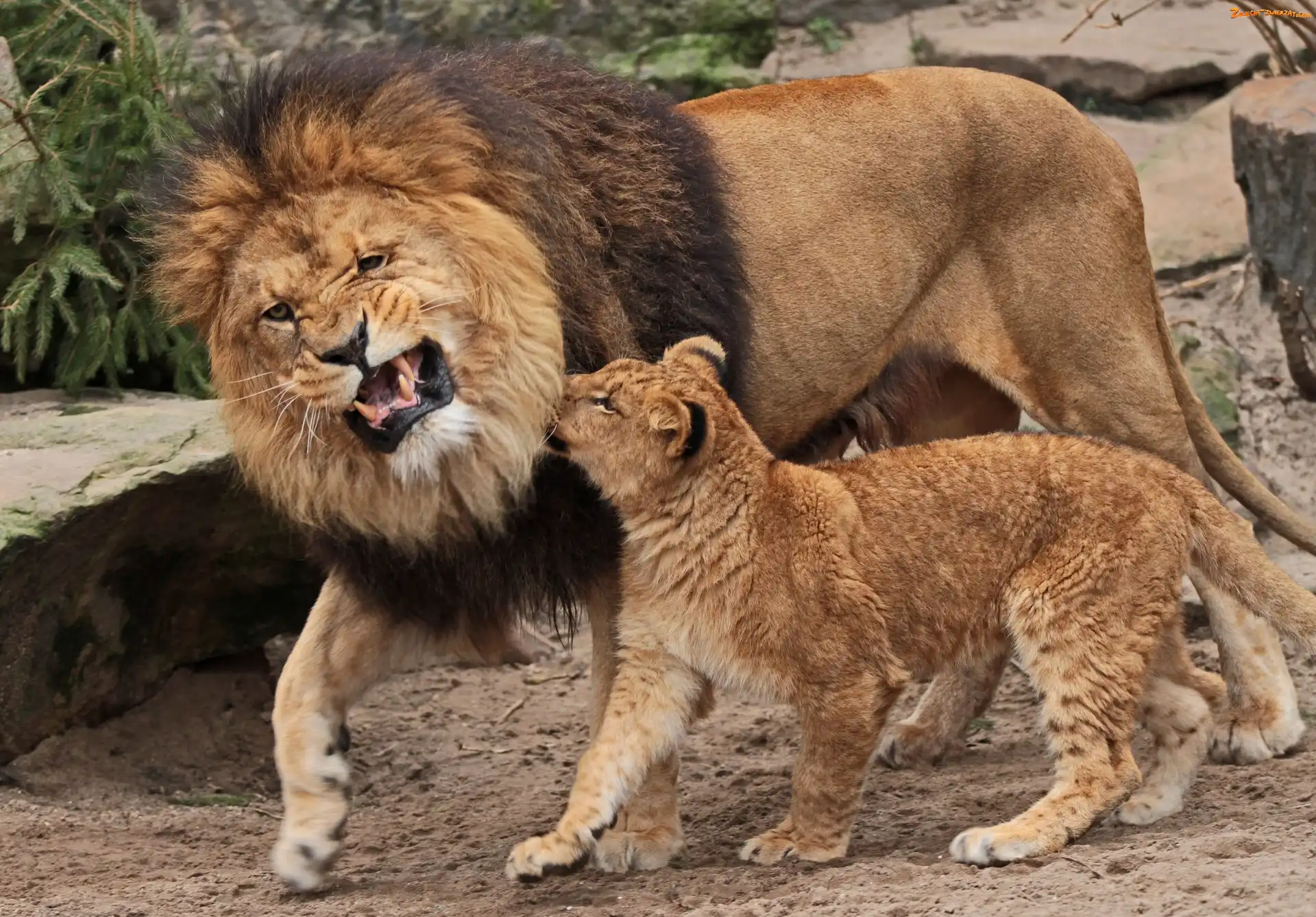 Lew, Śnieg Antylopa, Polowanie, Lew Para, Lwy Lew, Lwiątko, Potężny, Młode Grzywa, Cień, Lew, Łapa Lew Plaża, Lew, Lwica Lew, Albinos Lwa, Liść, Pysk Lwa, Potężna, Głowa Zieleń, Lew, Spojrzenie Lew Lwy, Zachód słońca Grzywa, Lew, Bujna