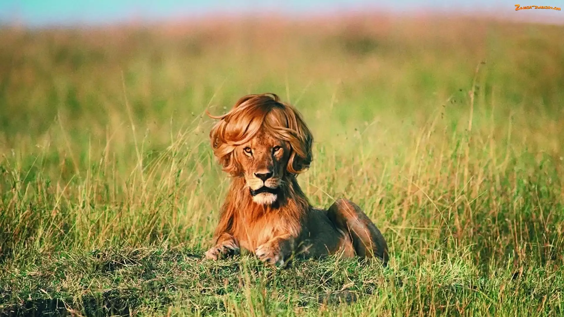 Zdjęcie: Trawa, Lew, Peruka