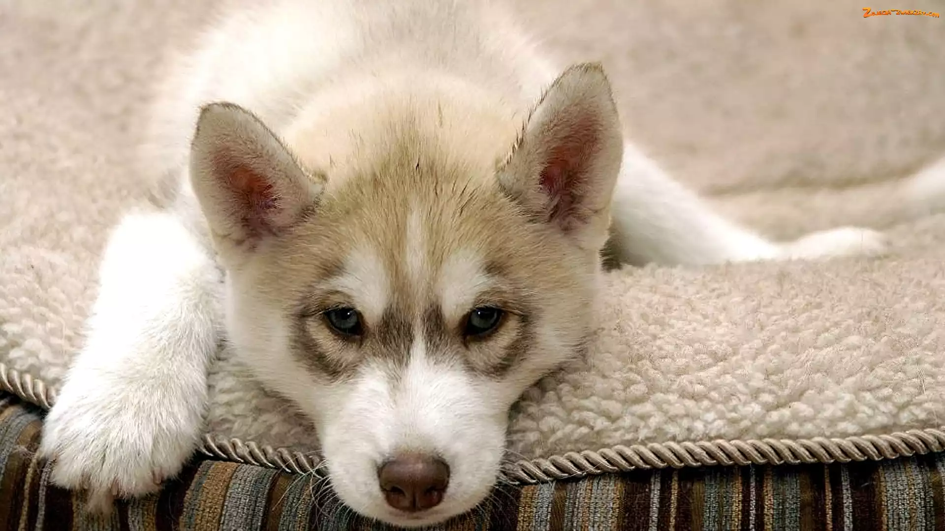 Zdjęcie: Leżący, Husky, Kocyk, Szczeniak