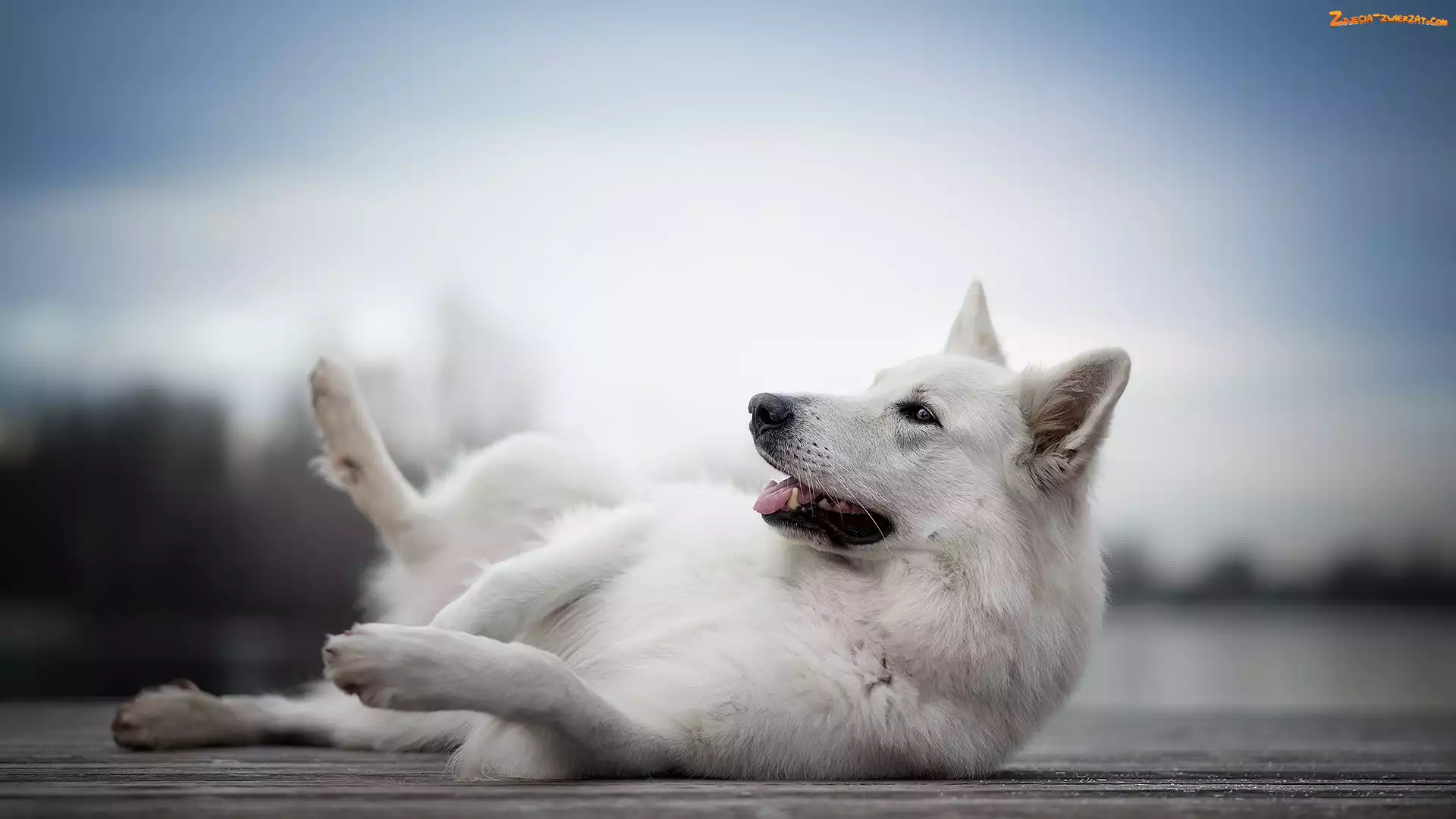Leżący, Kładka, Pies, Biały owczarek szwajcarski