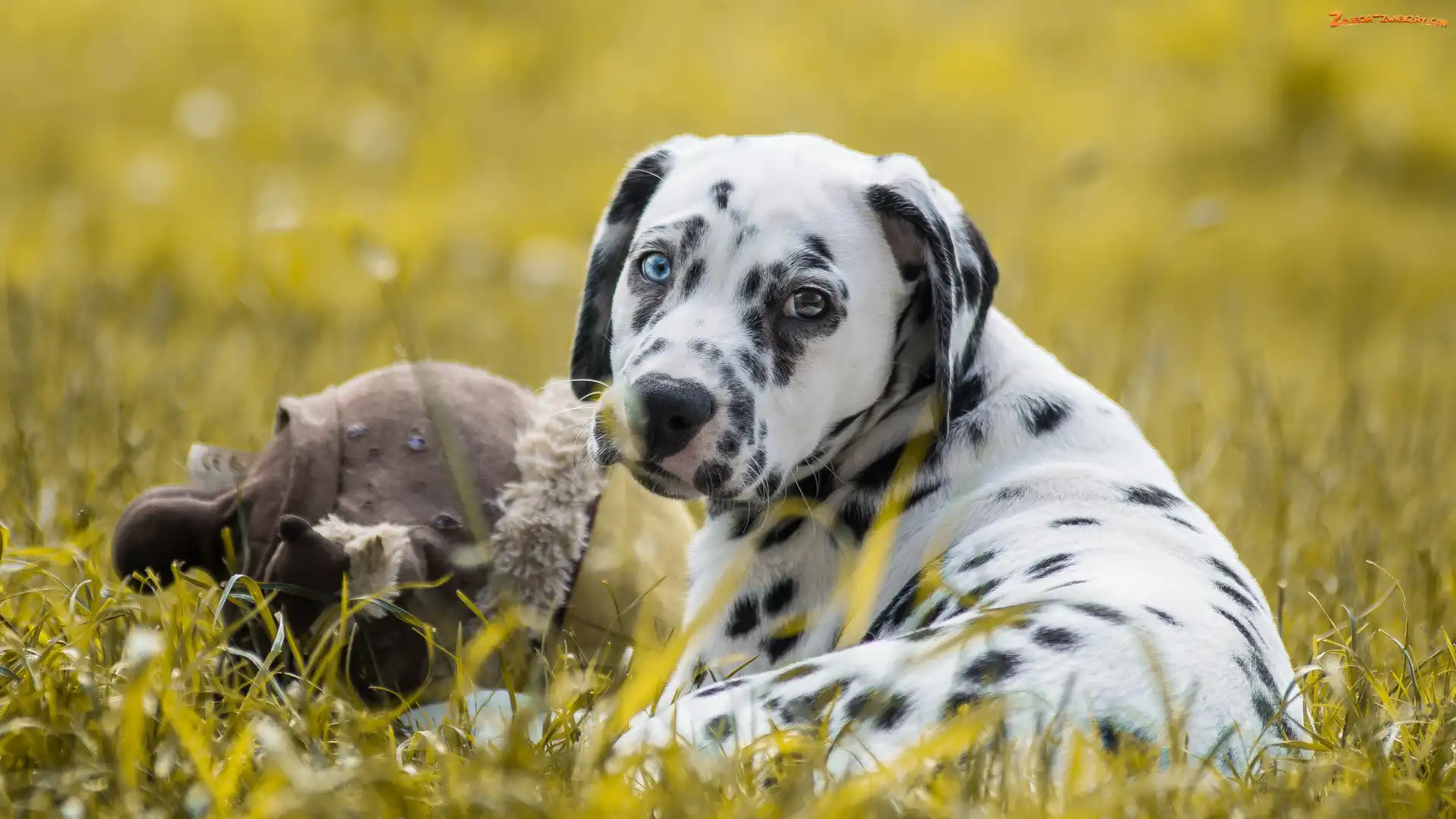 Zdjęcie: Leżący, Trawa, Pies, Dalmatyńczyk