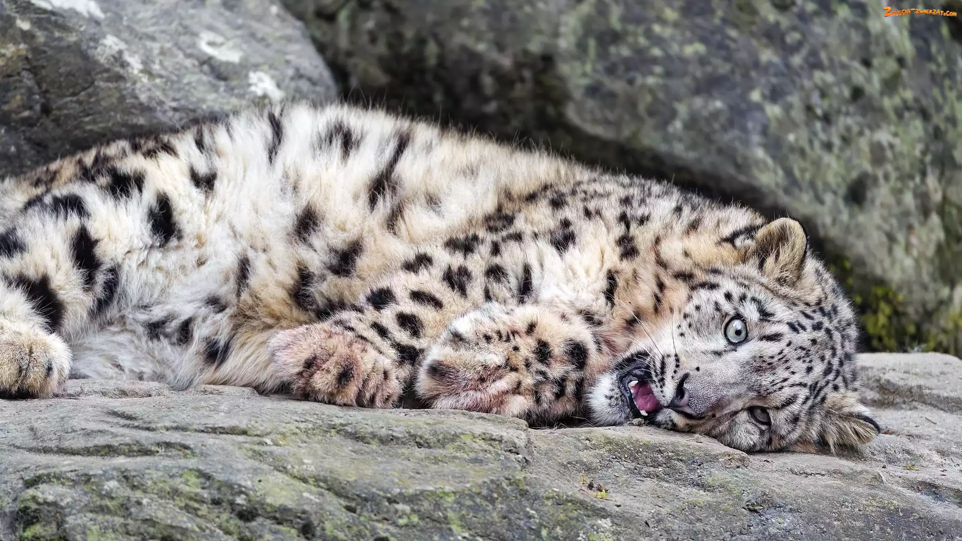 Zdjęcie: Paszcza, Otwarta, Skały, Leżący, Irbis śnieżny