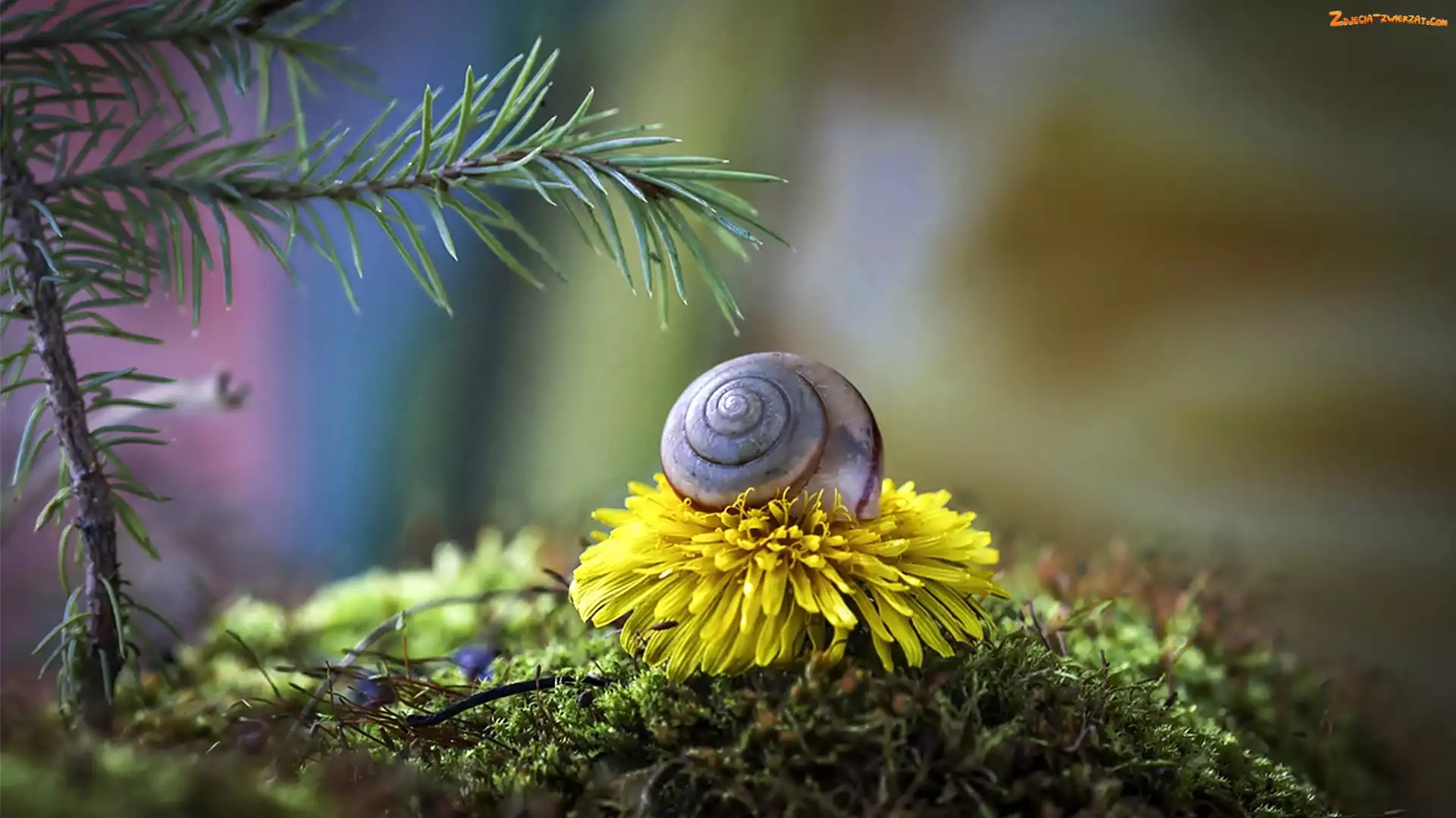 Zdjęcie: Mniszek. Ślimak, Gałązka