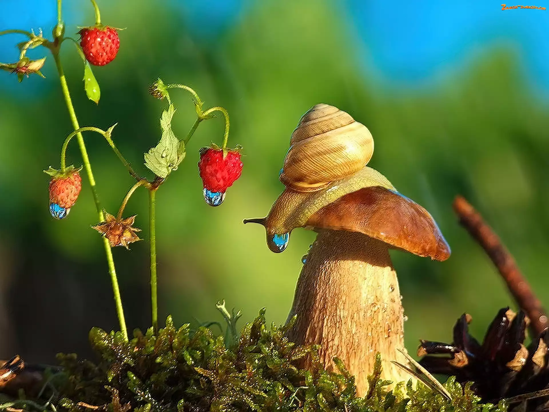 Zdjęcie: Poziomka, Ślimak, Grzyb