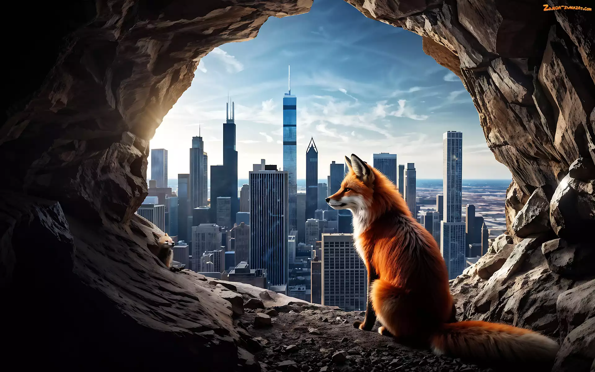 Zdjęcie: Wieżowce, Lis, Domy, Grafika, Jaskinia