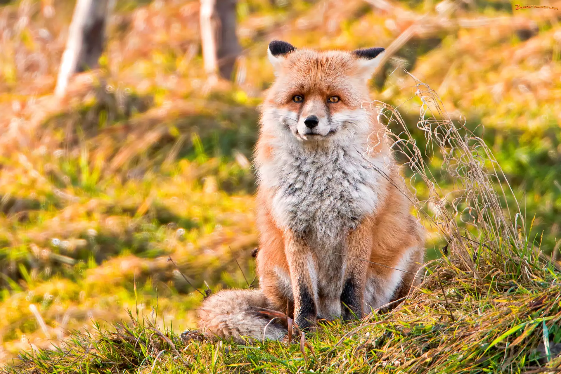 Zdjęcie: Siedzący, Rudy, Trawa, Lis
