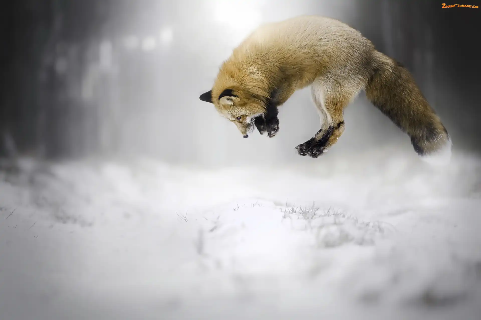 Zdjęcie: Śnieg, Skok, Lis, Polowanie