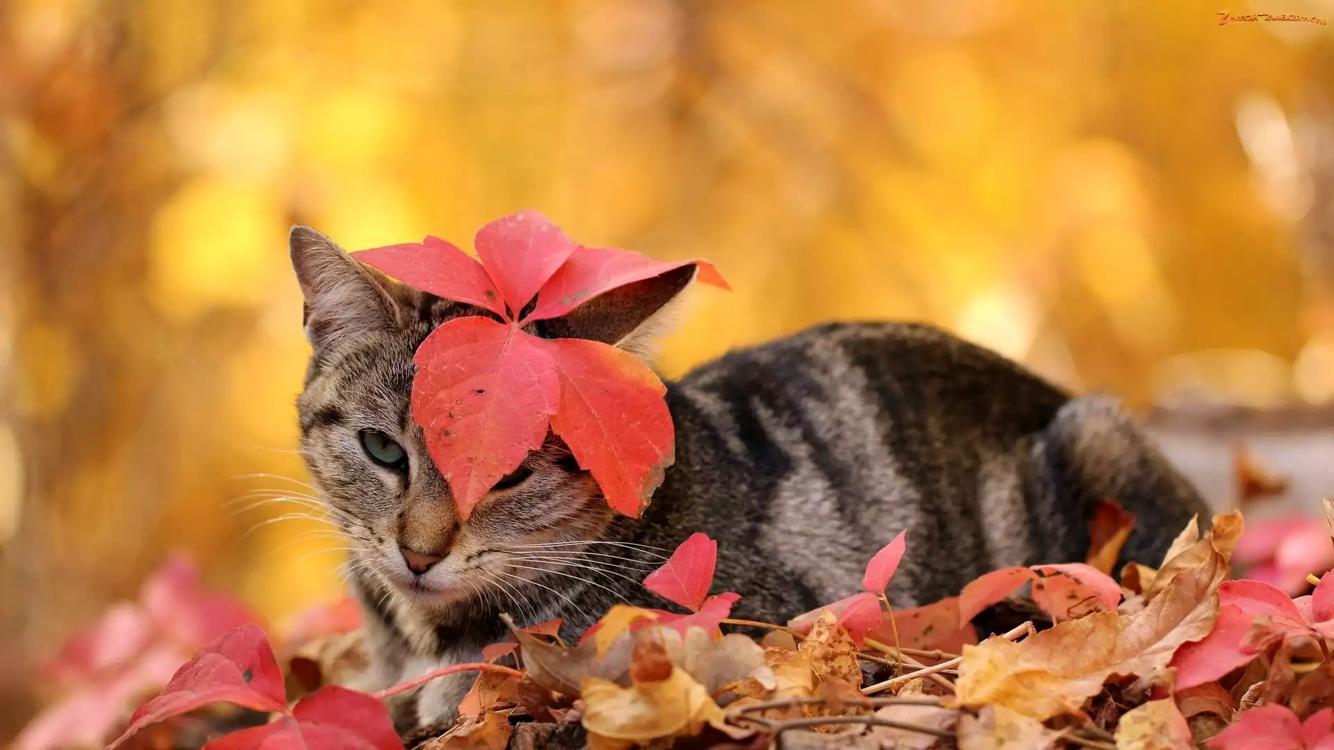 Zdjęcie: Liść, Głowie, Kot, Na