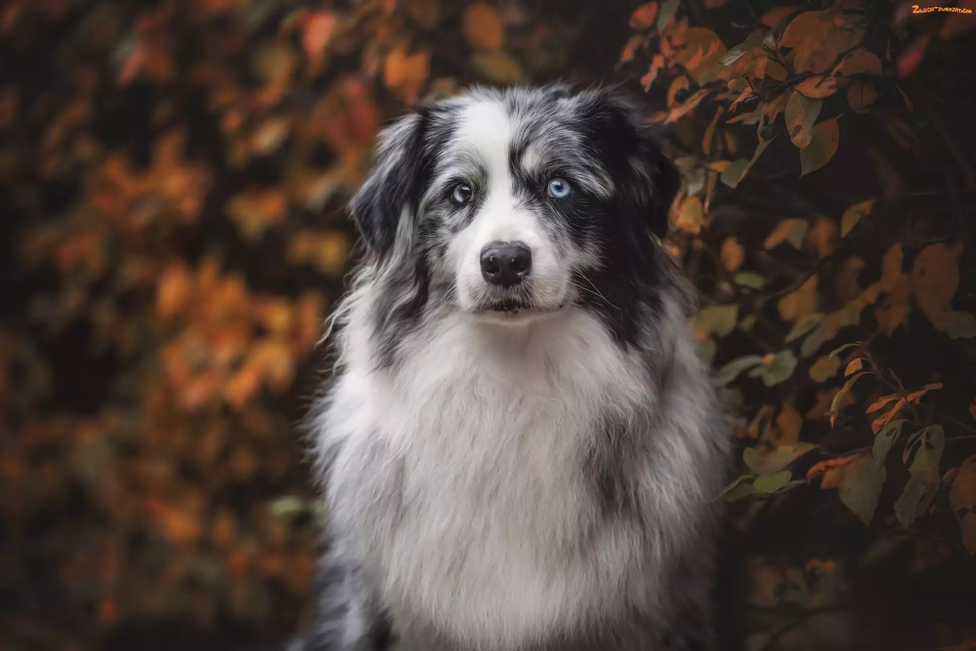Zdjęcie: Pies, Biało-szary, Liście, Owczarek australijski