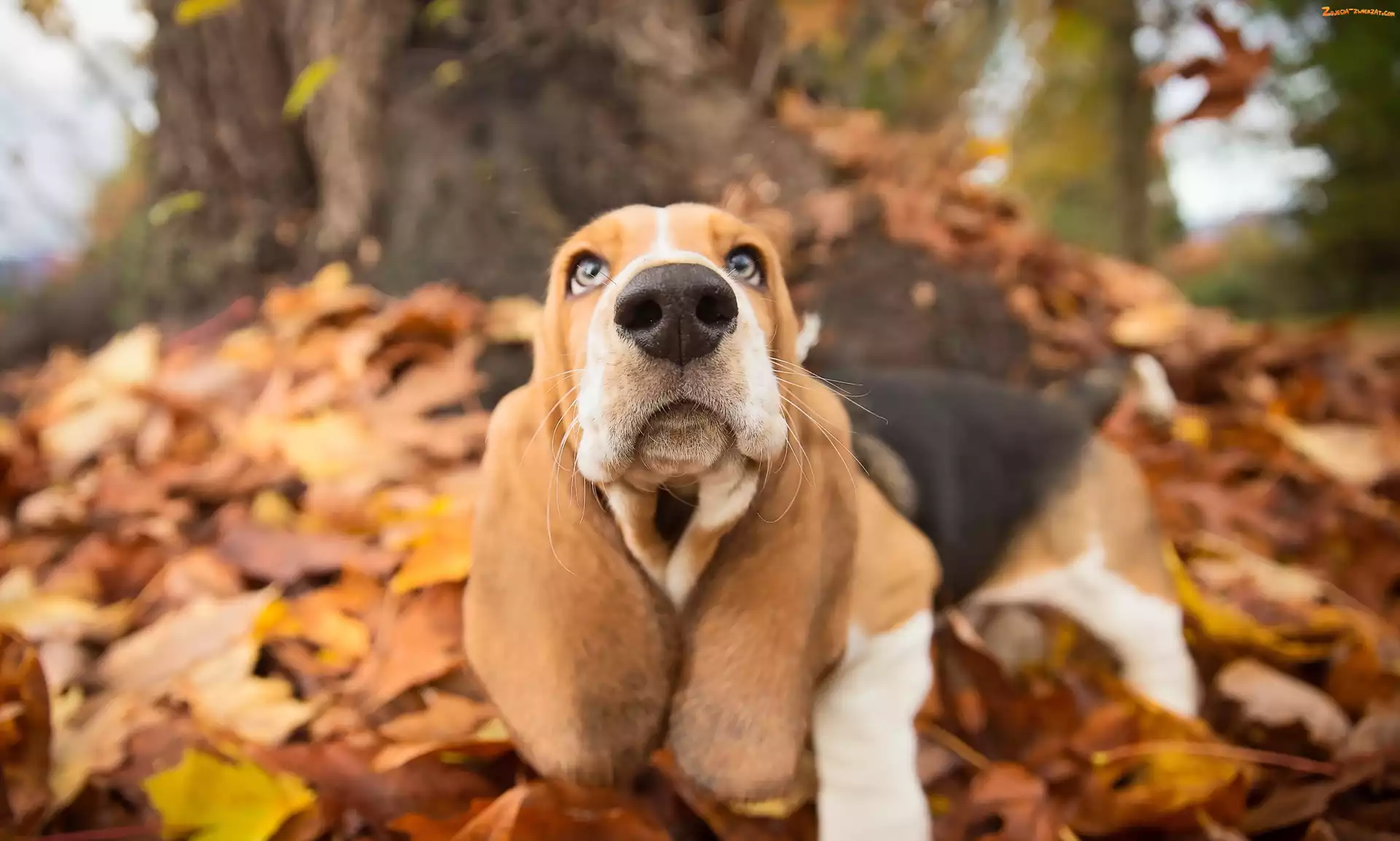 Zdjęcie: Liście, Pies, Basset hound