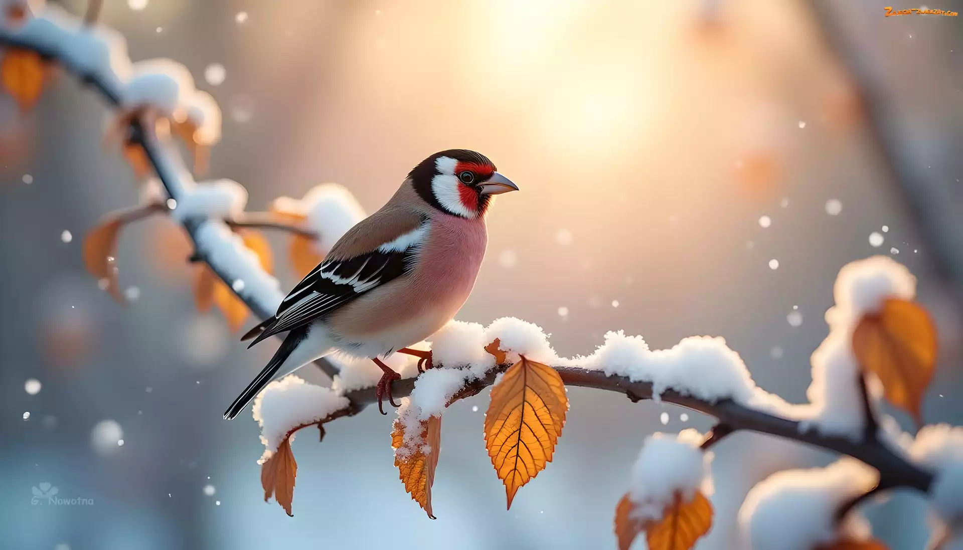 Zdjęcie: Śnieg, Liście, Grafika, Ptak, Gałąź