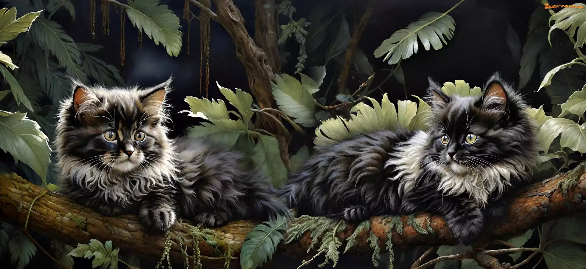 Zdjęcie: Gałąź, Liście, Grafika, Dwa, Koty