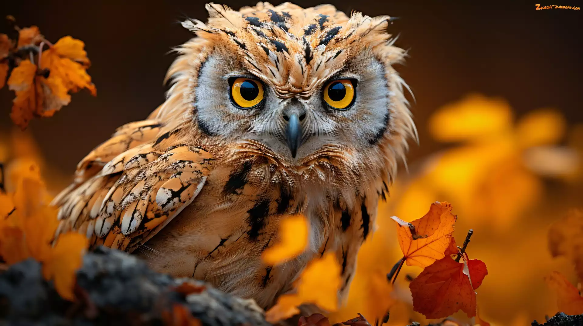 Zdjęcie: Jesień, Liście, Grafika, Sowa, Puszczyk