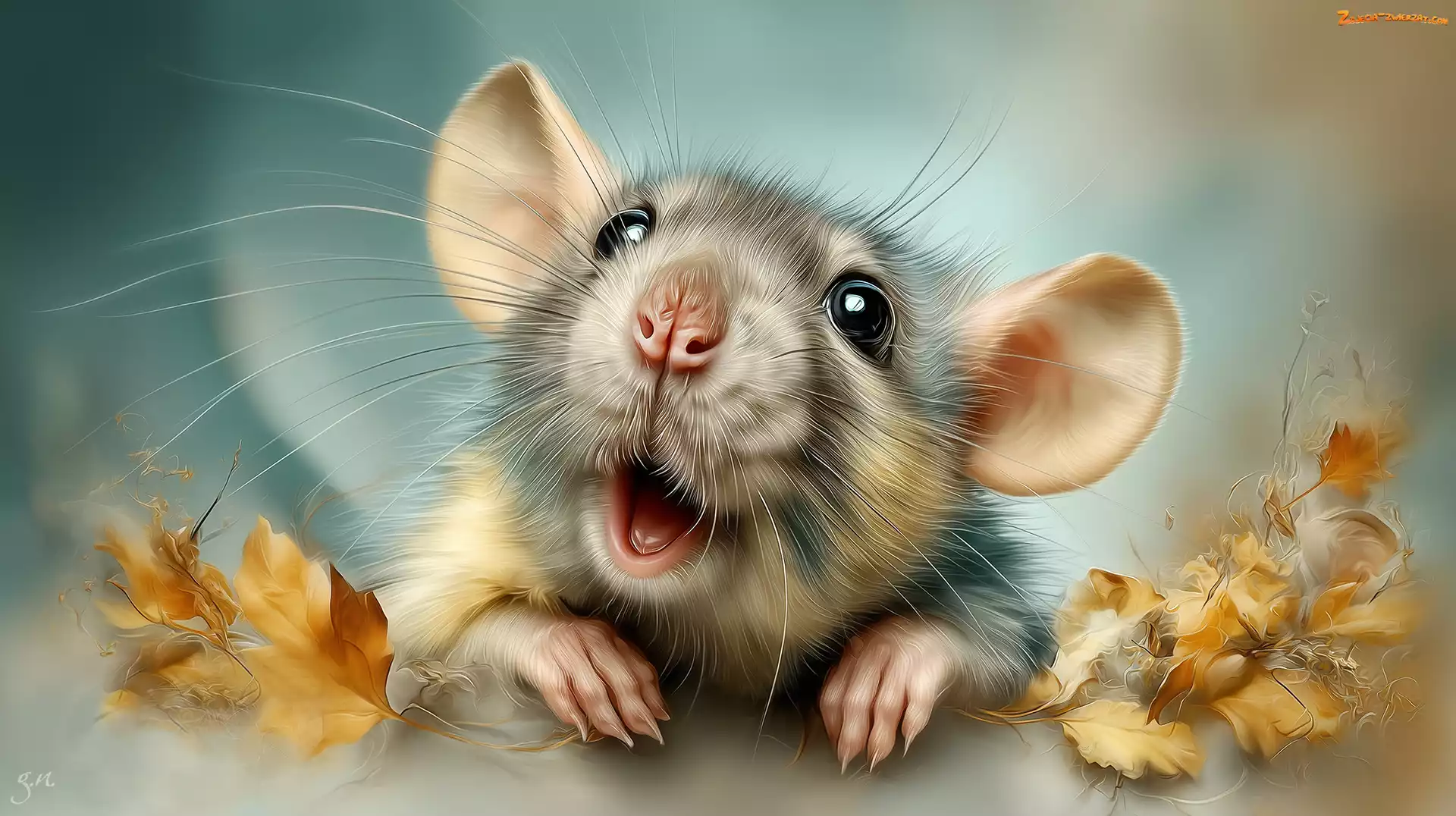 Zdjęcie: Grafika AI, Szczur, Liście