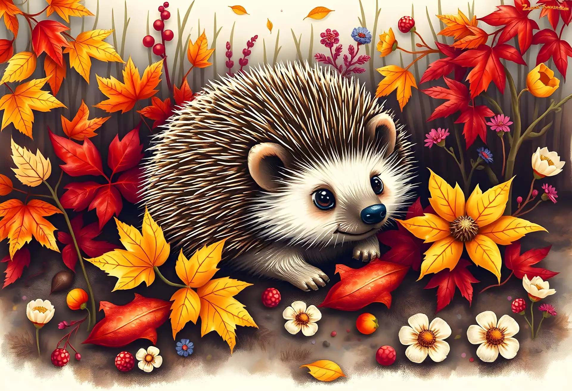Zdjęcie: Jeż, Jesień, Grafika, Liście