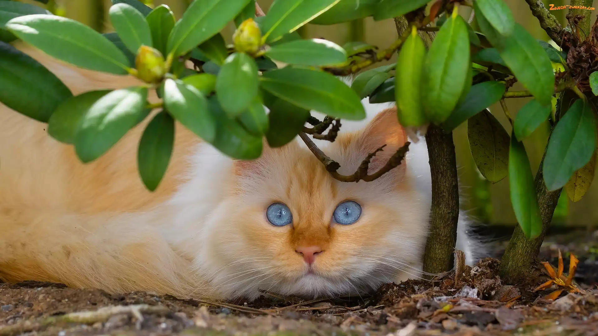 Liście, Kot, Rudawy, Leżący, Niebieskooki