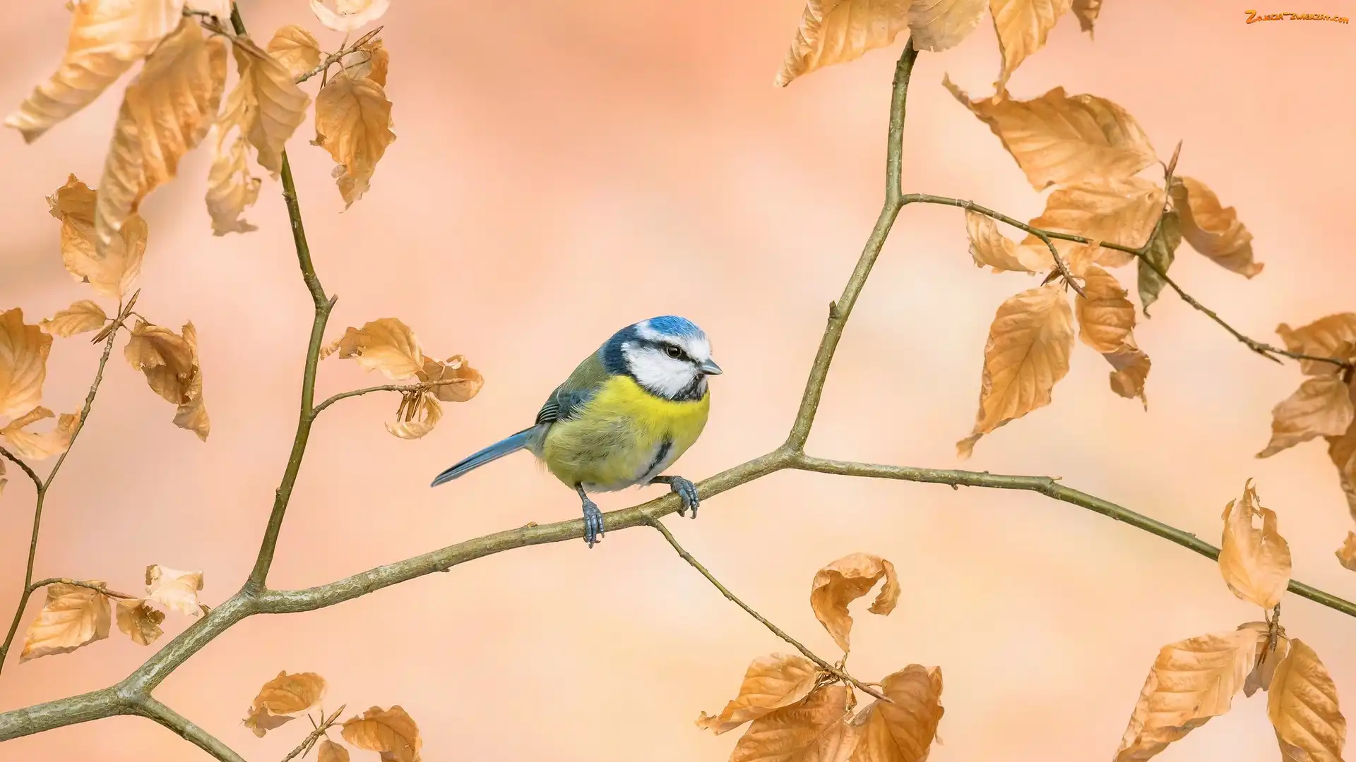 Zdjęcie: Liście, Gałązka, Sikorka, Ptak, Modraszka zwyczajna