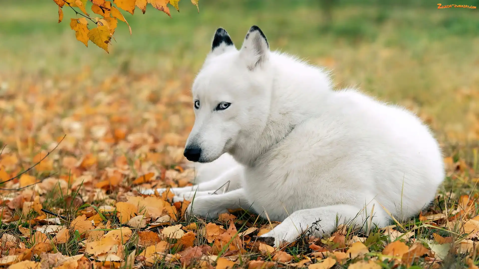 Zdjęcie: Pies, Liście, Biały
