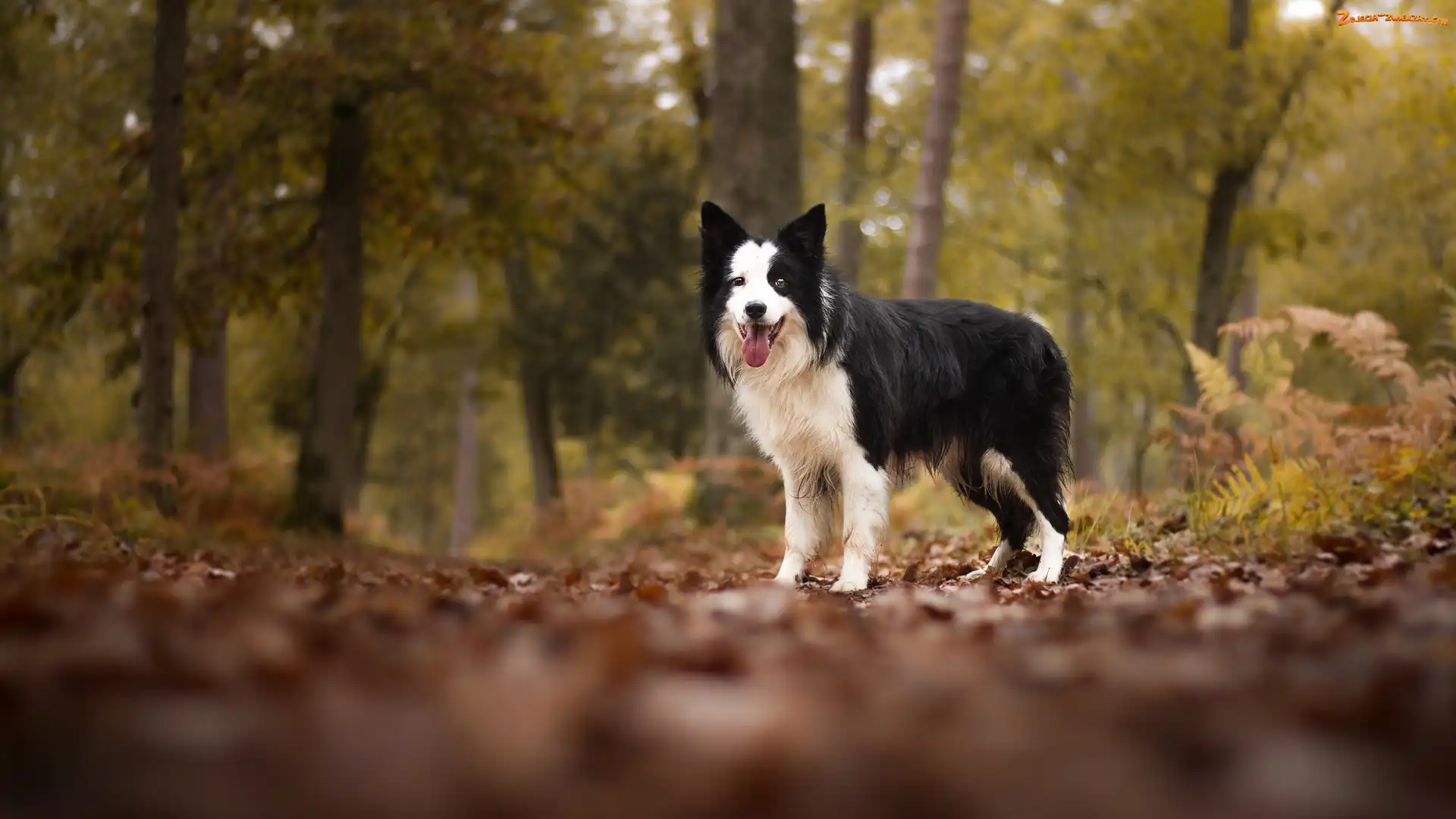 Zdjęcie: Liście, Drzewa, Border collie, Pies, Las