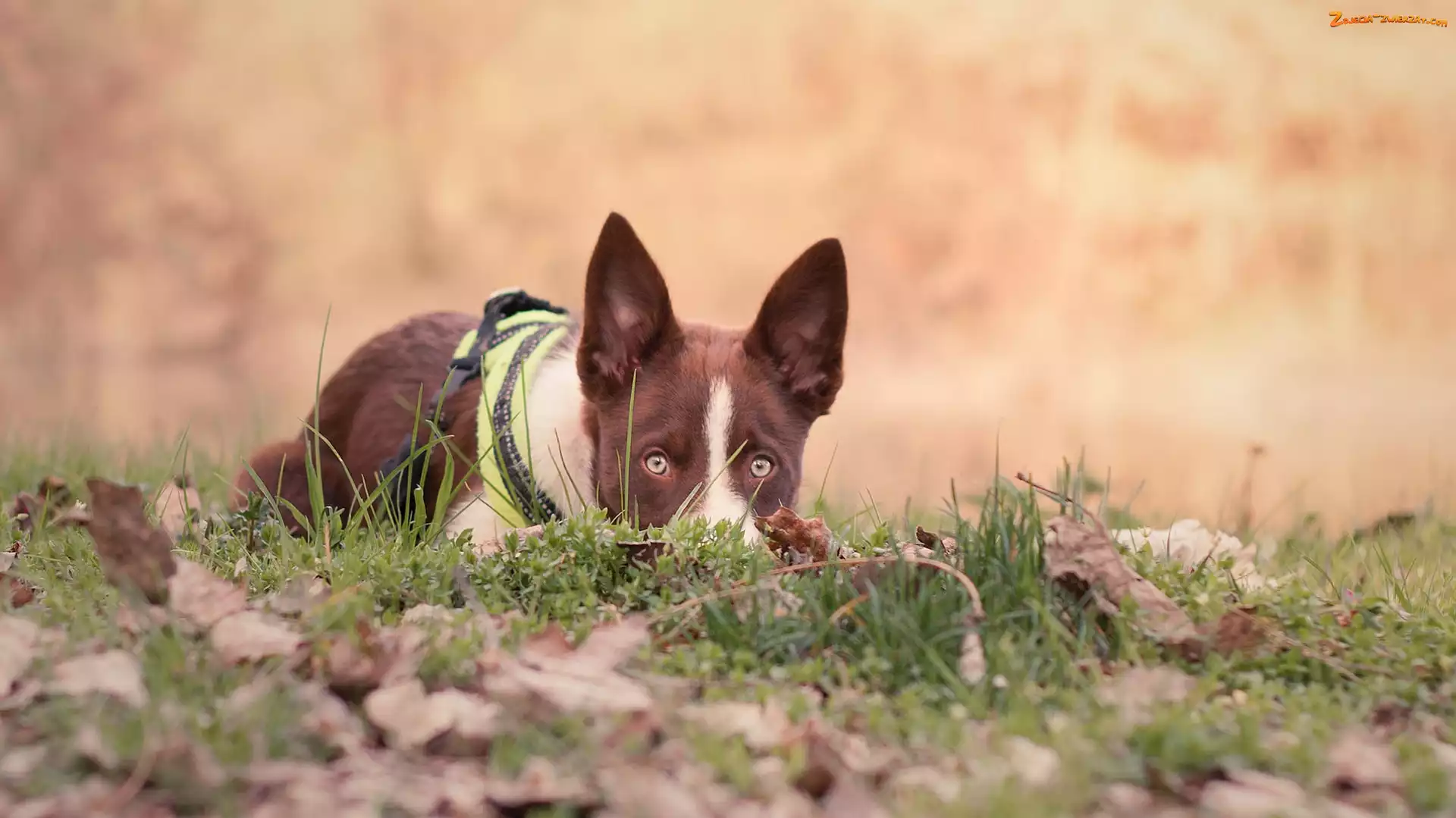 Zdjęcie: Liście, Trawa, Border collie, Pies, Łąka