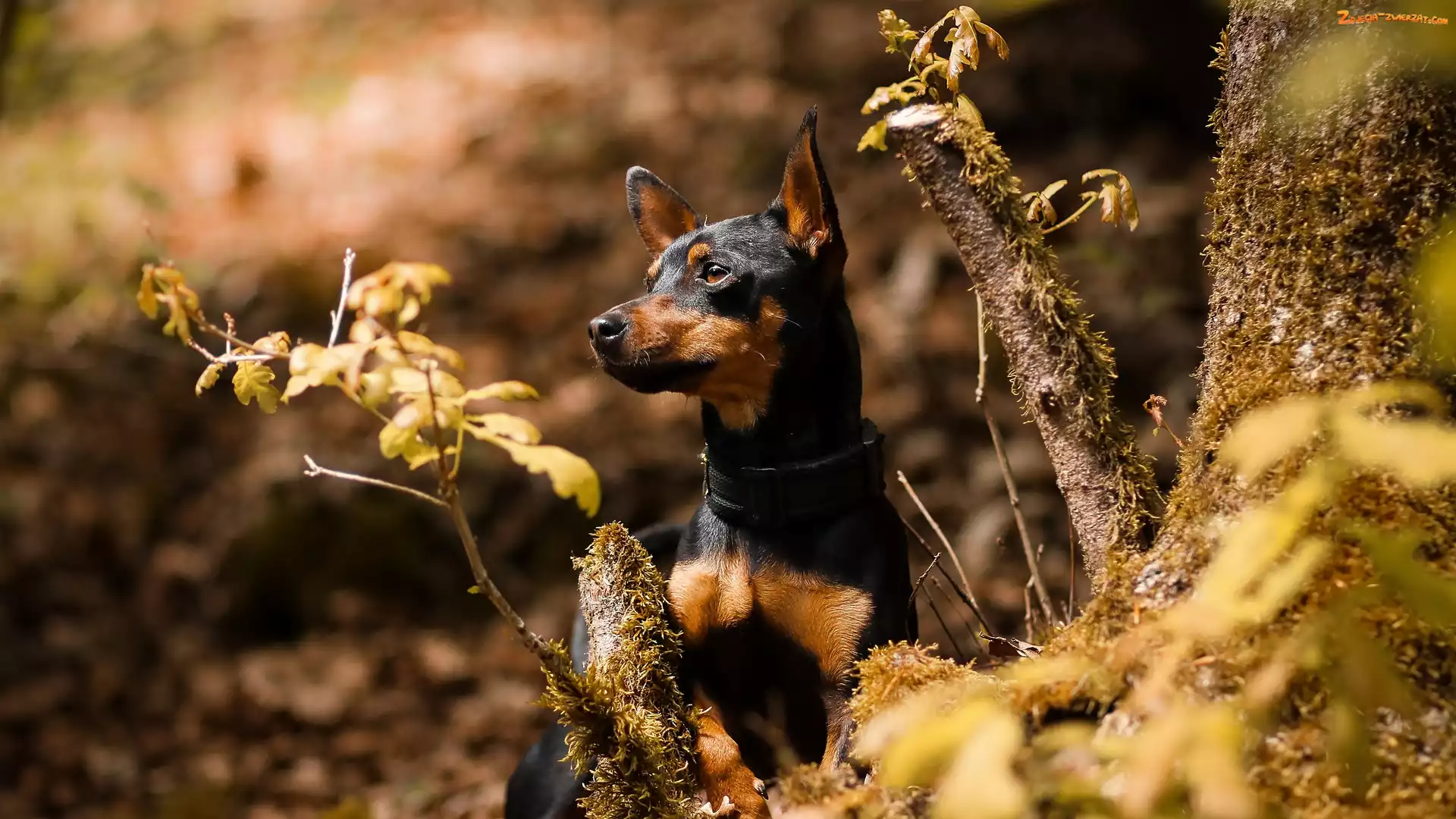 Zdjęcie: Liście, Rośliny, Pinczer miniaturowy, Pies, Drzewo